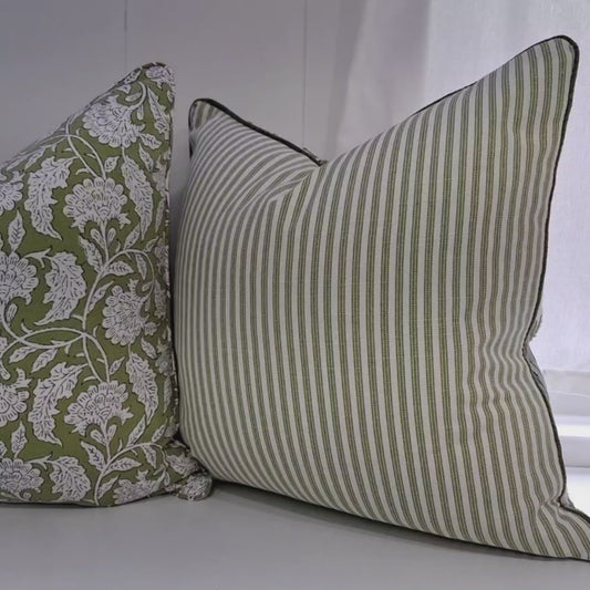 Red Ticking Stripe cushion Covers. Australian made cushion covers.