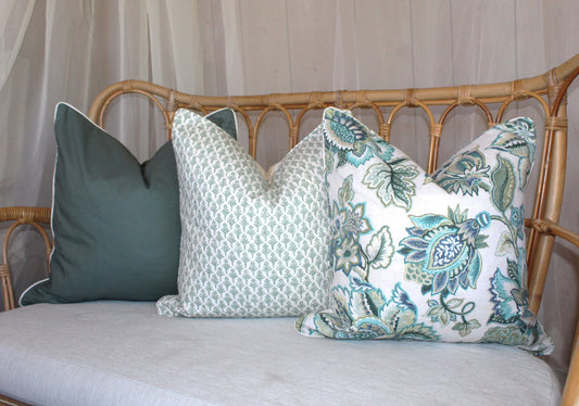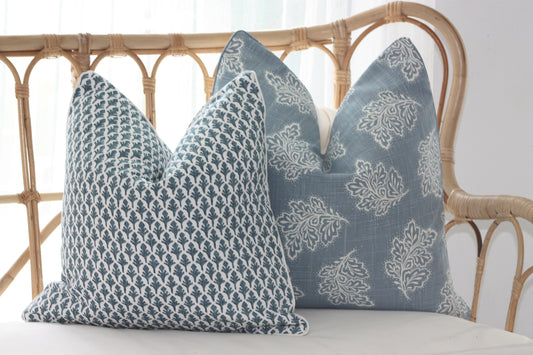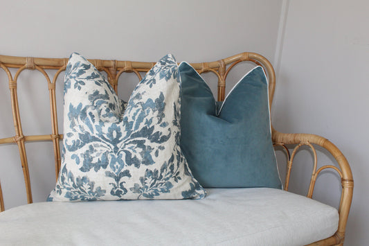 Duck egg Blue Floral and Ticking Stripe cushion covers