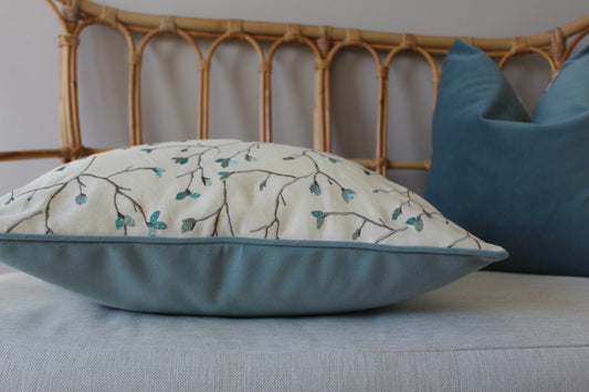 Blue Blossom Embroidered Cushion