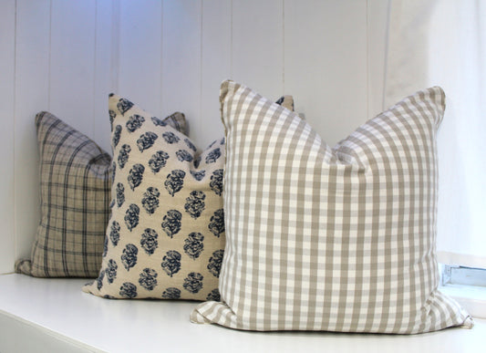 Large Check Beige Cushion Cover by Acacia Textiles