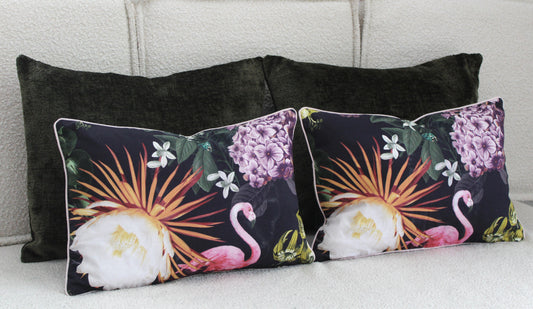 Pair of Pink Flamingo Floral Cushion covers. Made in Australia