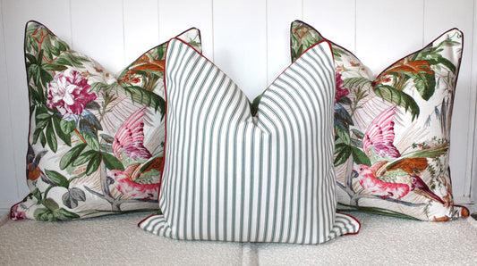 Pair of Beautiful Large Exotic Bird Basketweave Textured Cushions