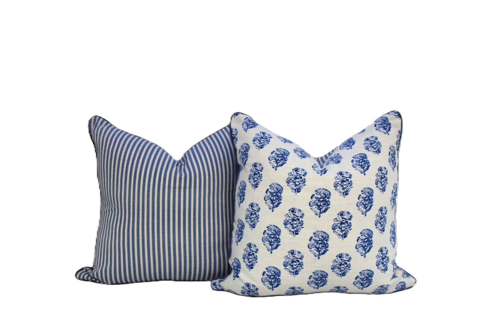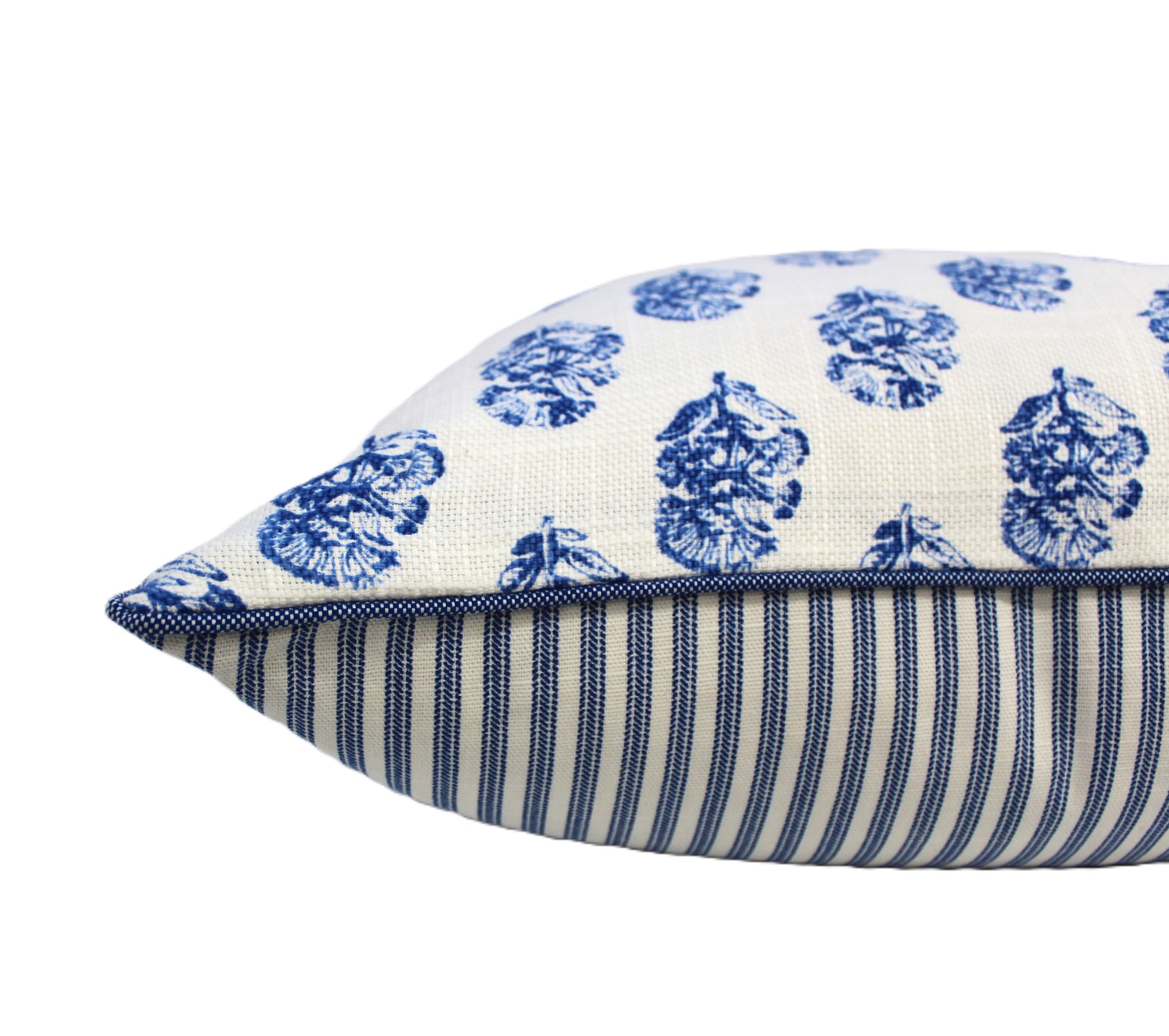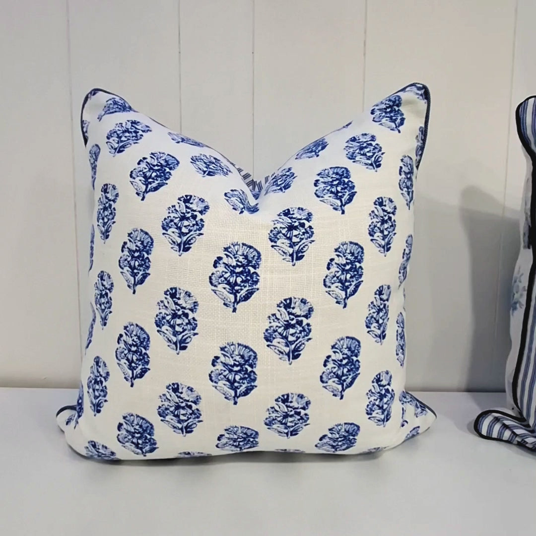 You can choose to have denim piping as shown in the last photo or ticking stripe piping as same as backing or you can choose to have piping in the floral fabric. Write the piping option you want to choose in the personalization section.
