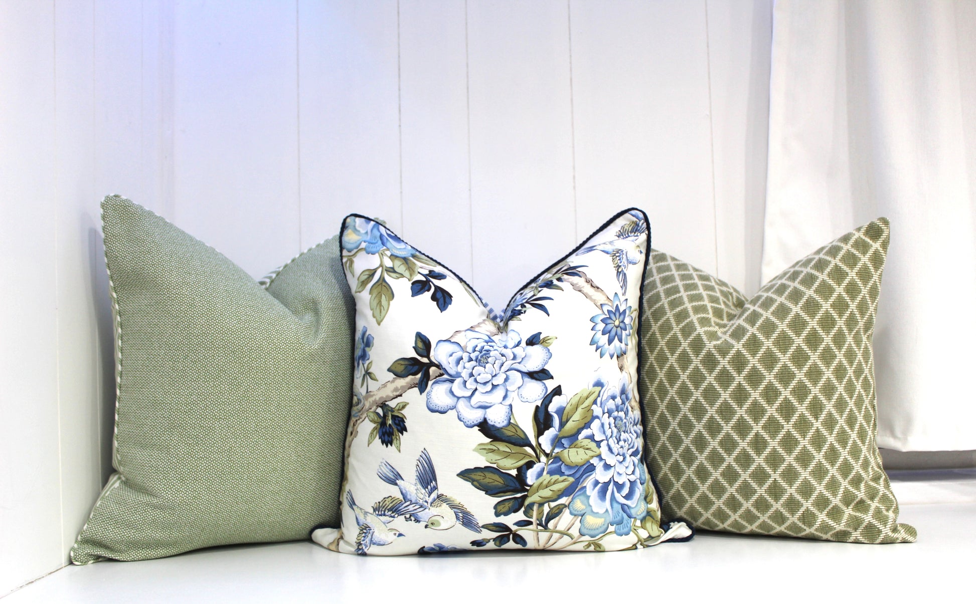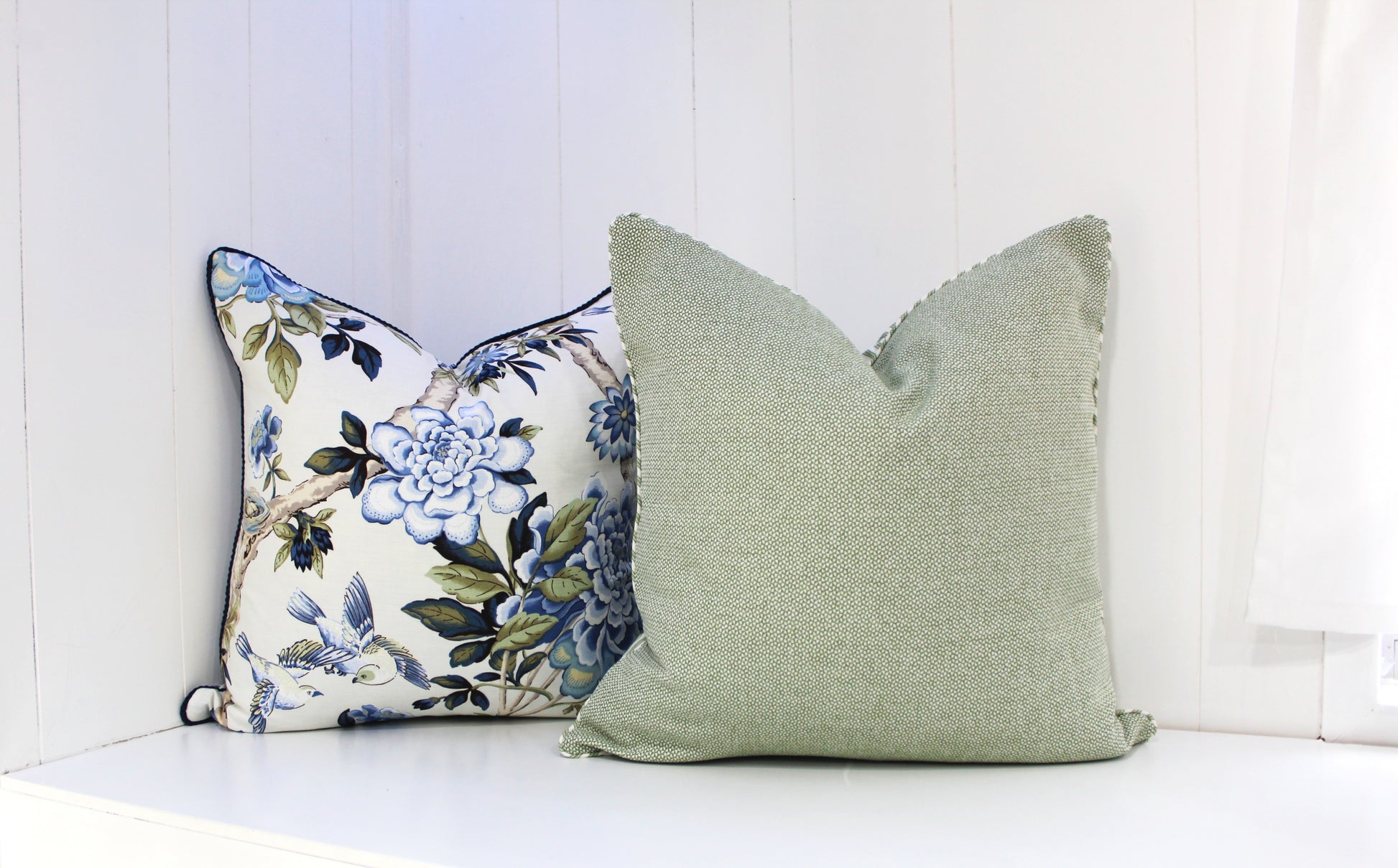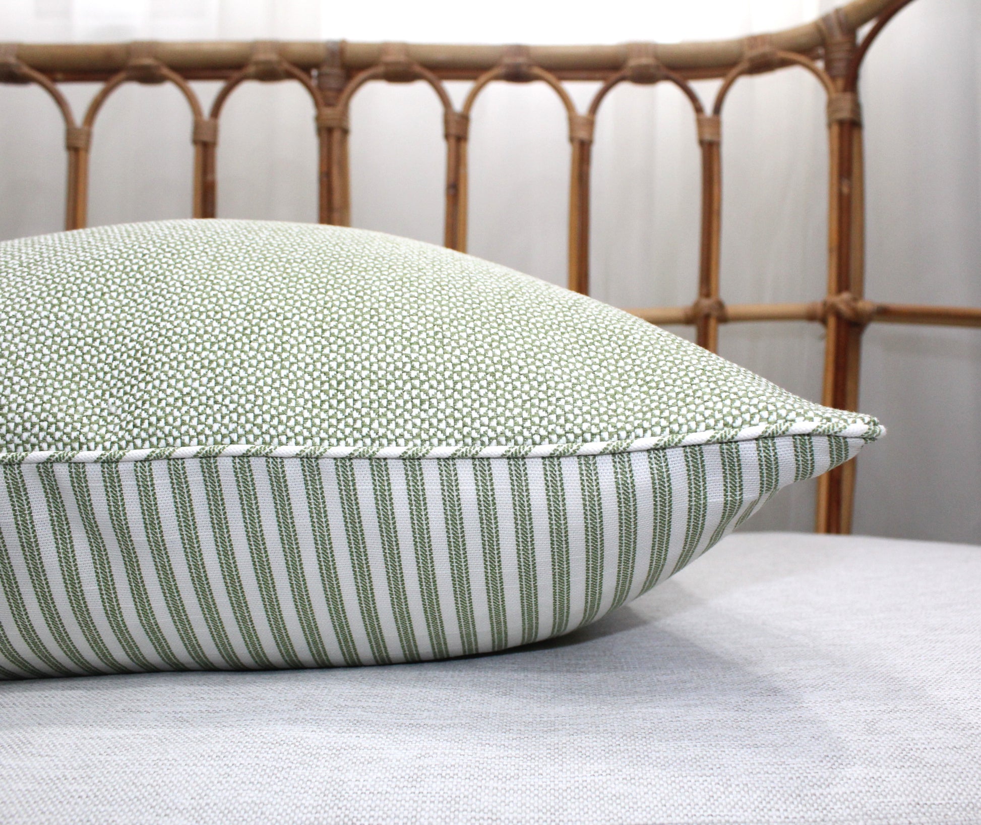 We offer two different options Backed with Balmain fabric or backed with Sage Ticking Fabric.