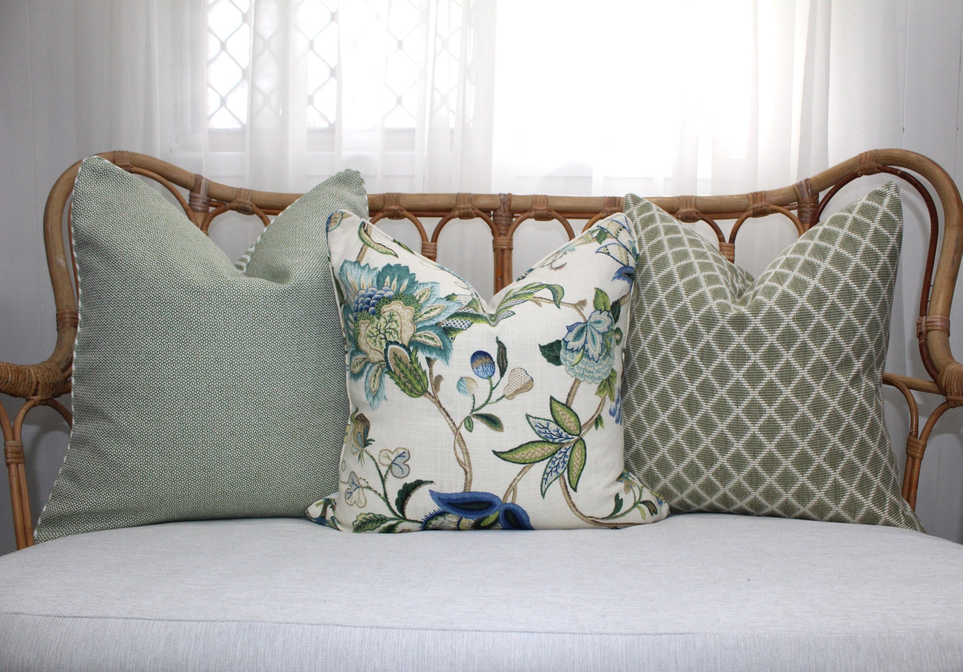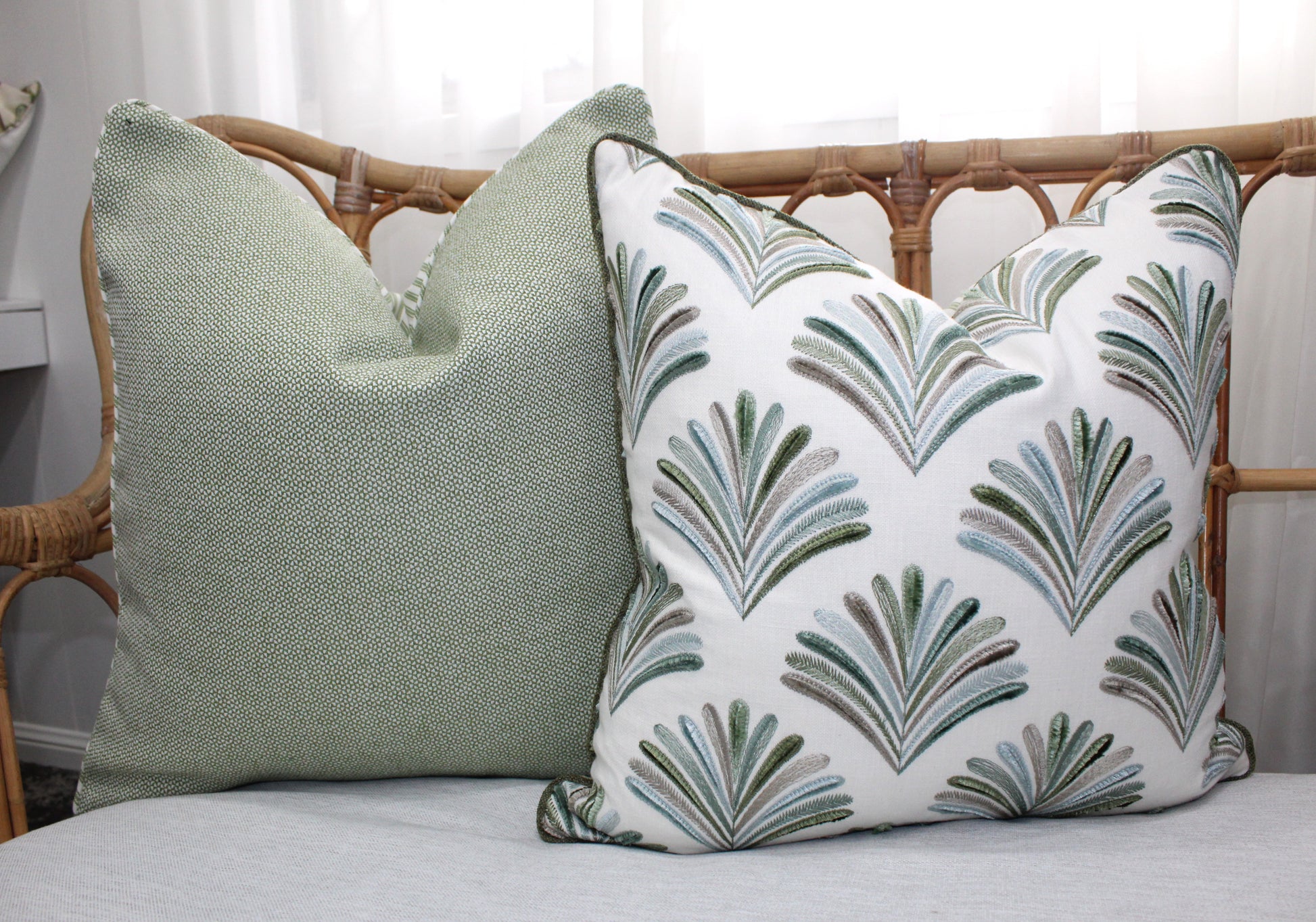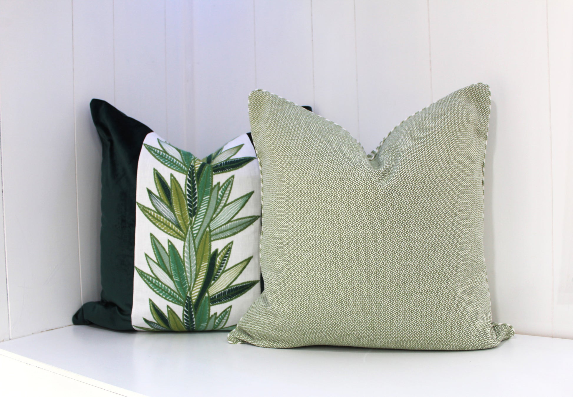 We offer two different options Backed with Balmain fabric or backed with Sage Ticking Fabric.