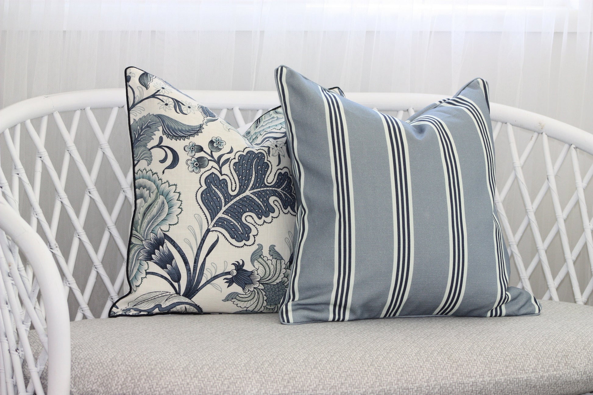 1. both sides are made using same fabric and beautifully self piped so piping goes perfectly with rest of the cushion.