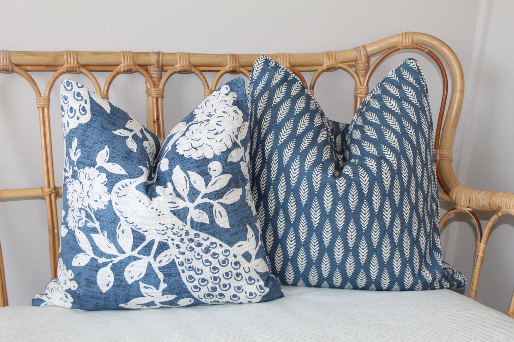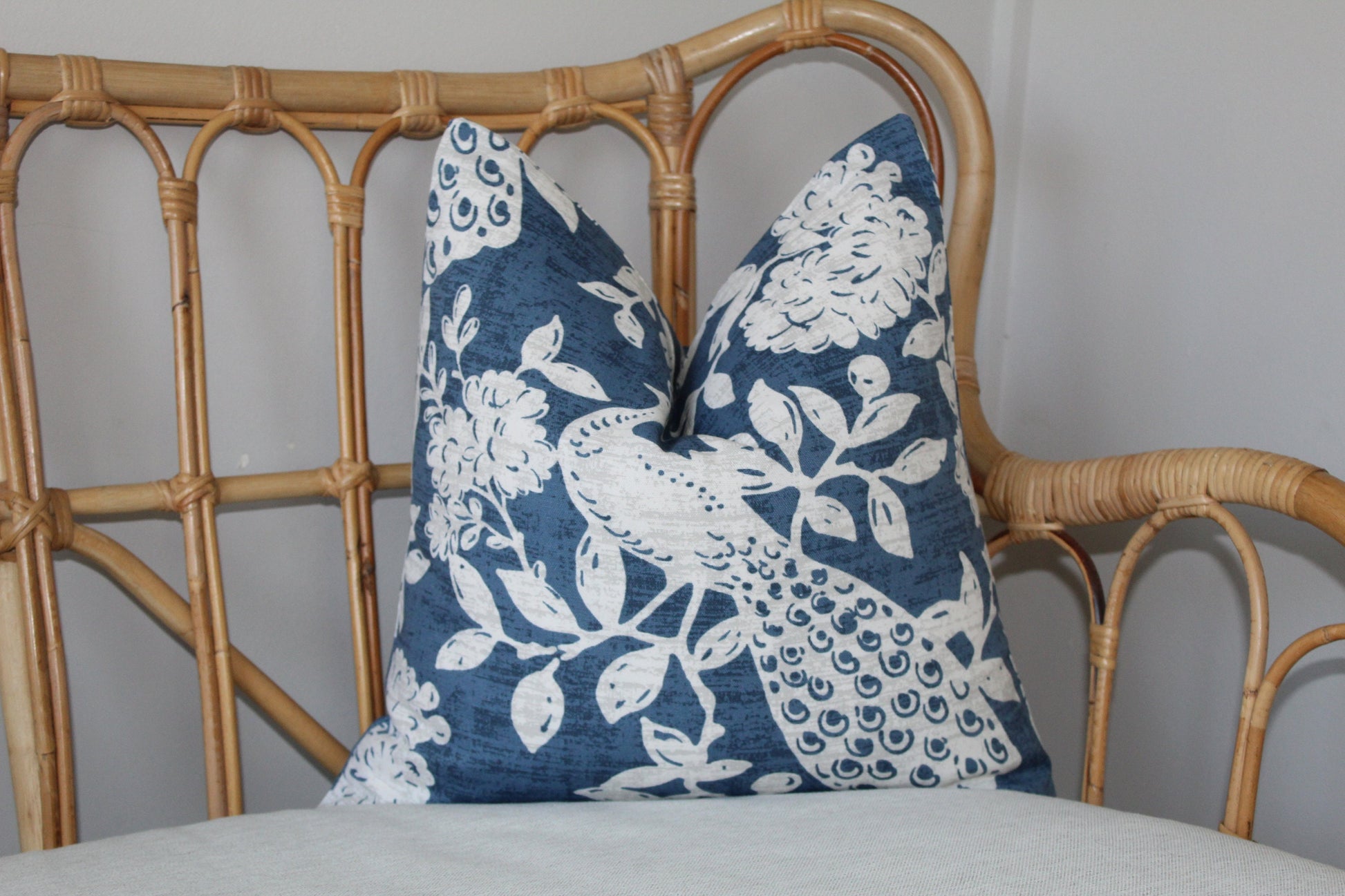We have only 3 covers left in this peacock pattern. 50x50 self piping and has same fabric on both ends.