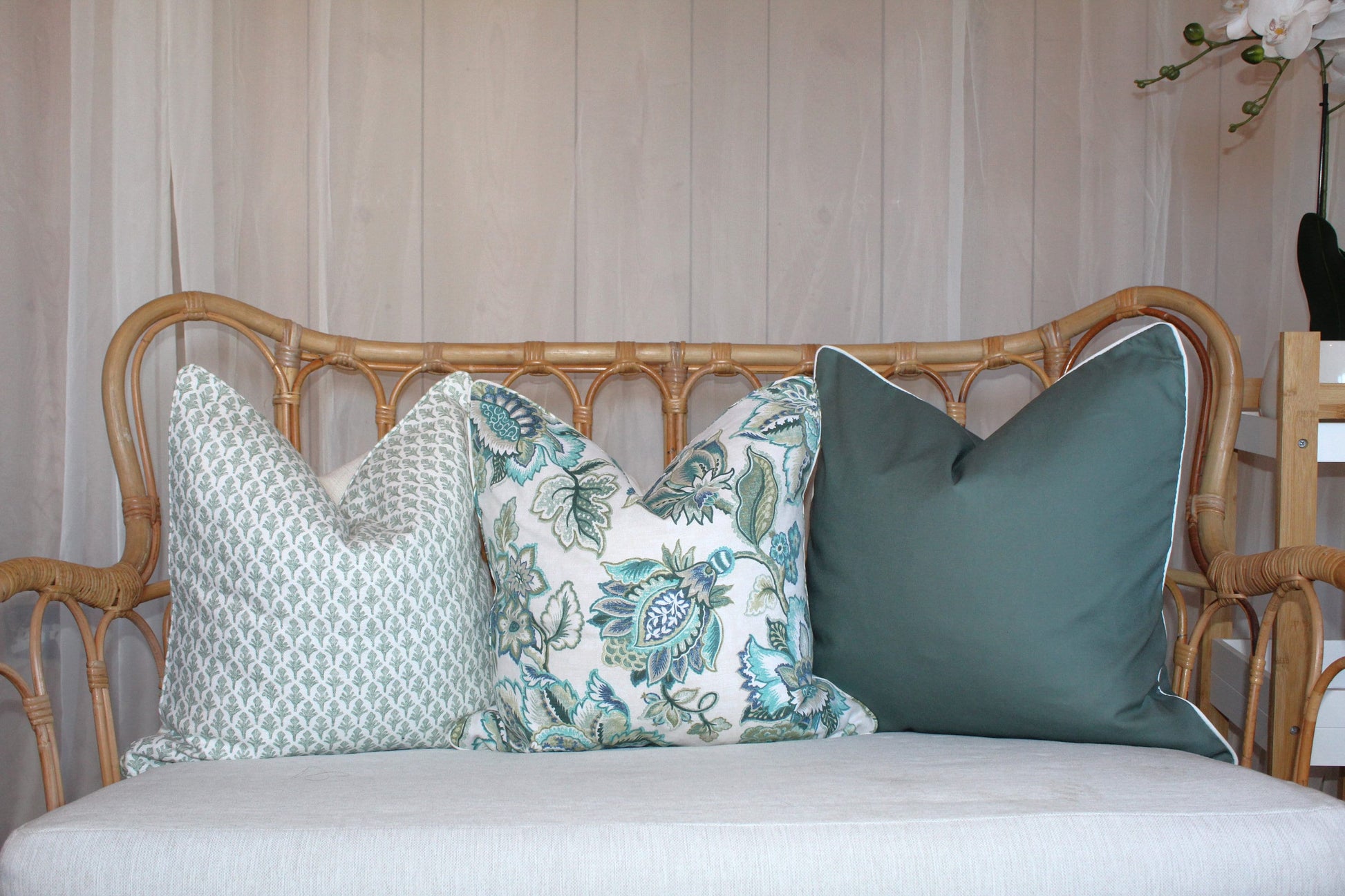 All cushion covers are piped using same fabric and invisible zipper at bottom.