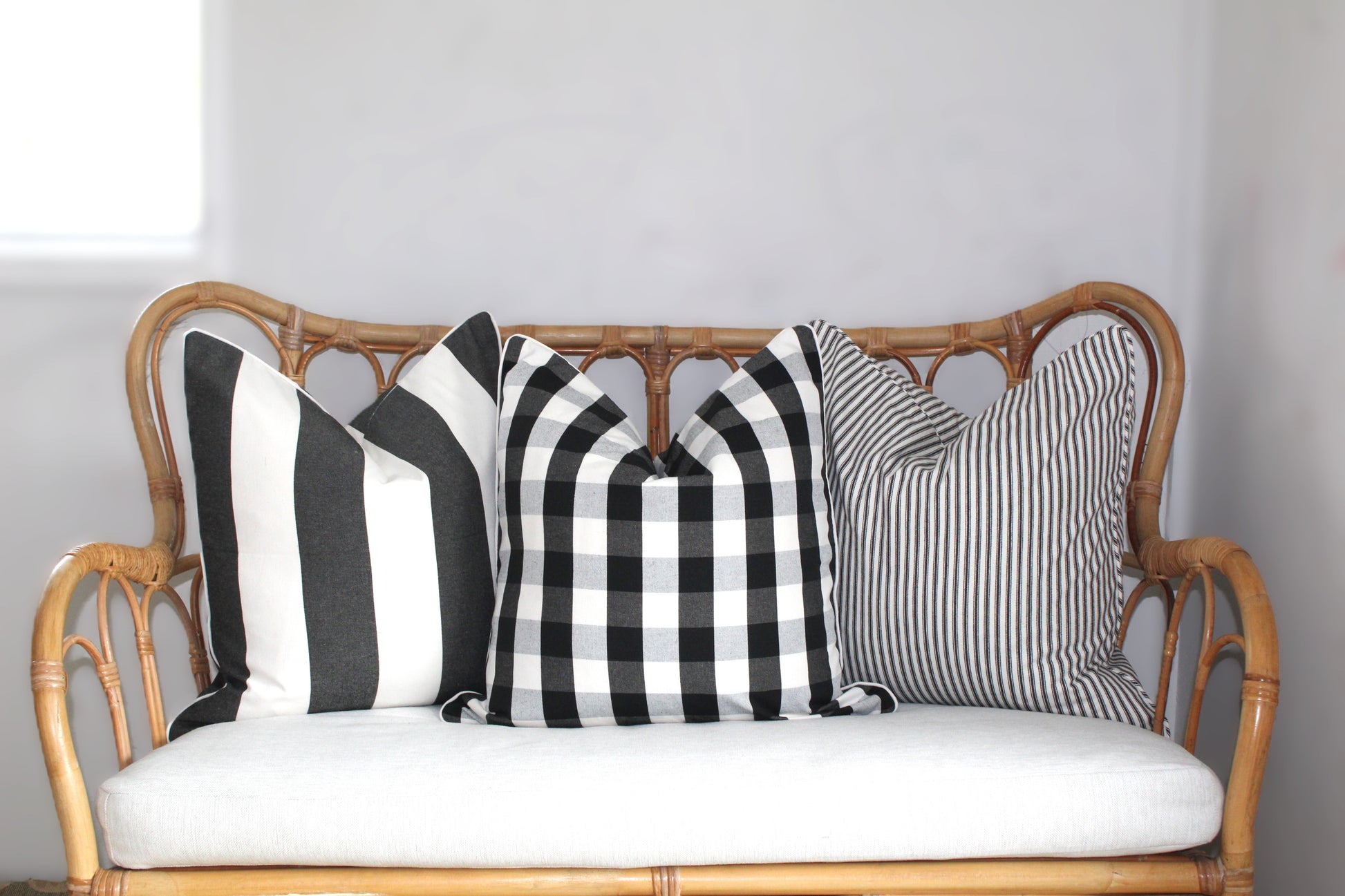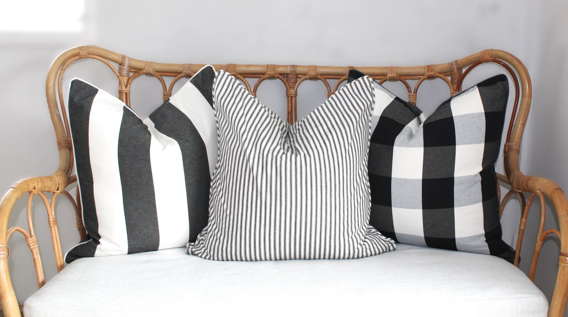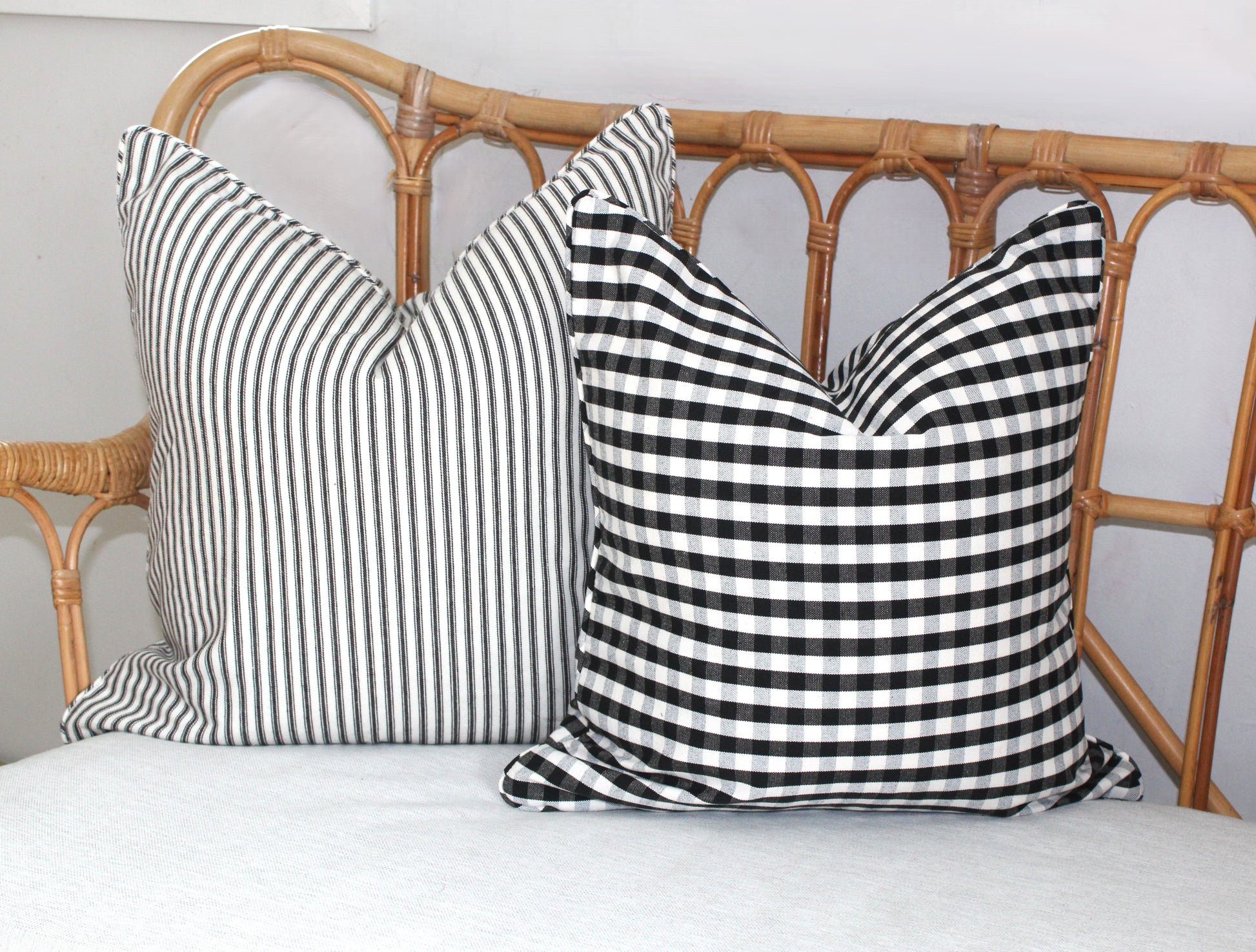 Beautiful black and white scatter cushion covers. We have only 2 of 50x50 sizes from all designs, but have more of ticking cover in stock in any size.