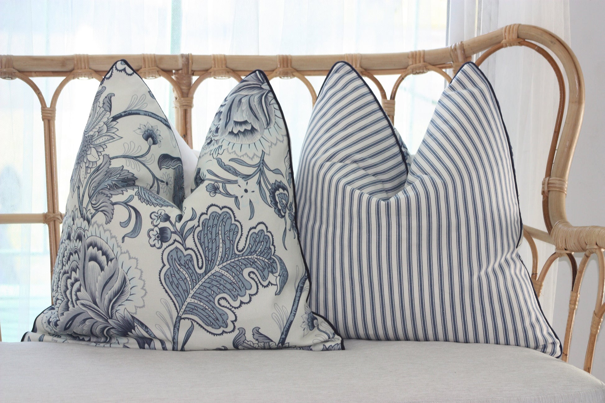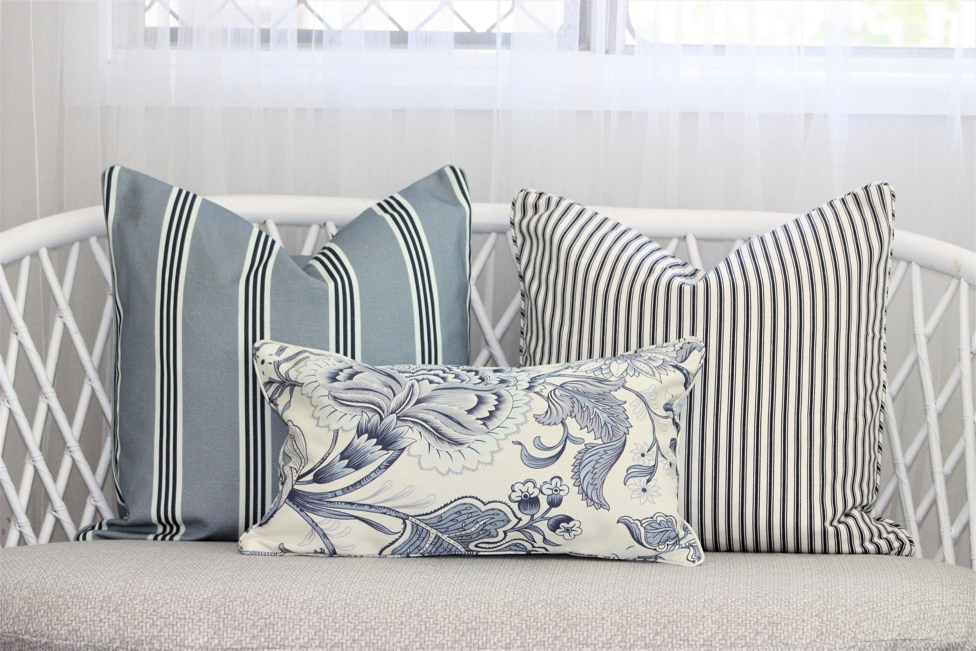 These covers go with most of the trending home styling such as: The Hamptons, Classic Modern, Farmhouse, and Classic blue and white themes. Pattern may vary