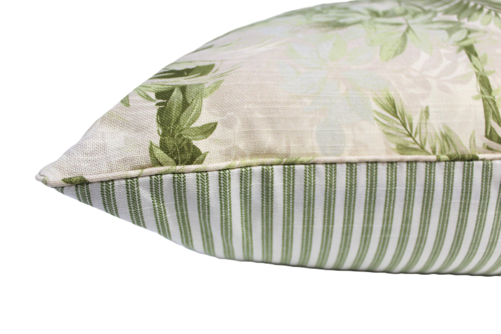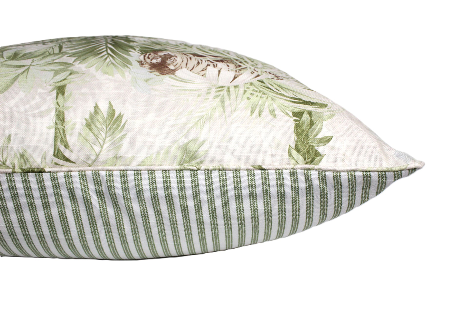 This cover has nice self piping edges and has sage ticking fabric for the back side.