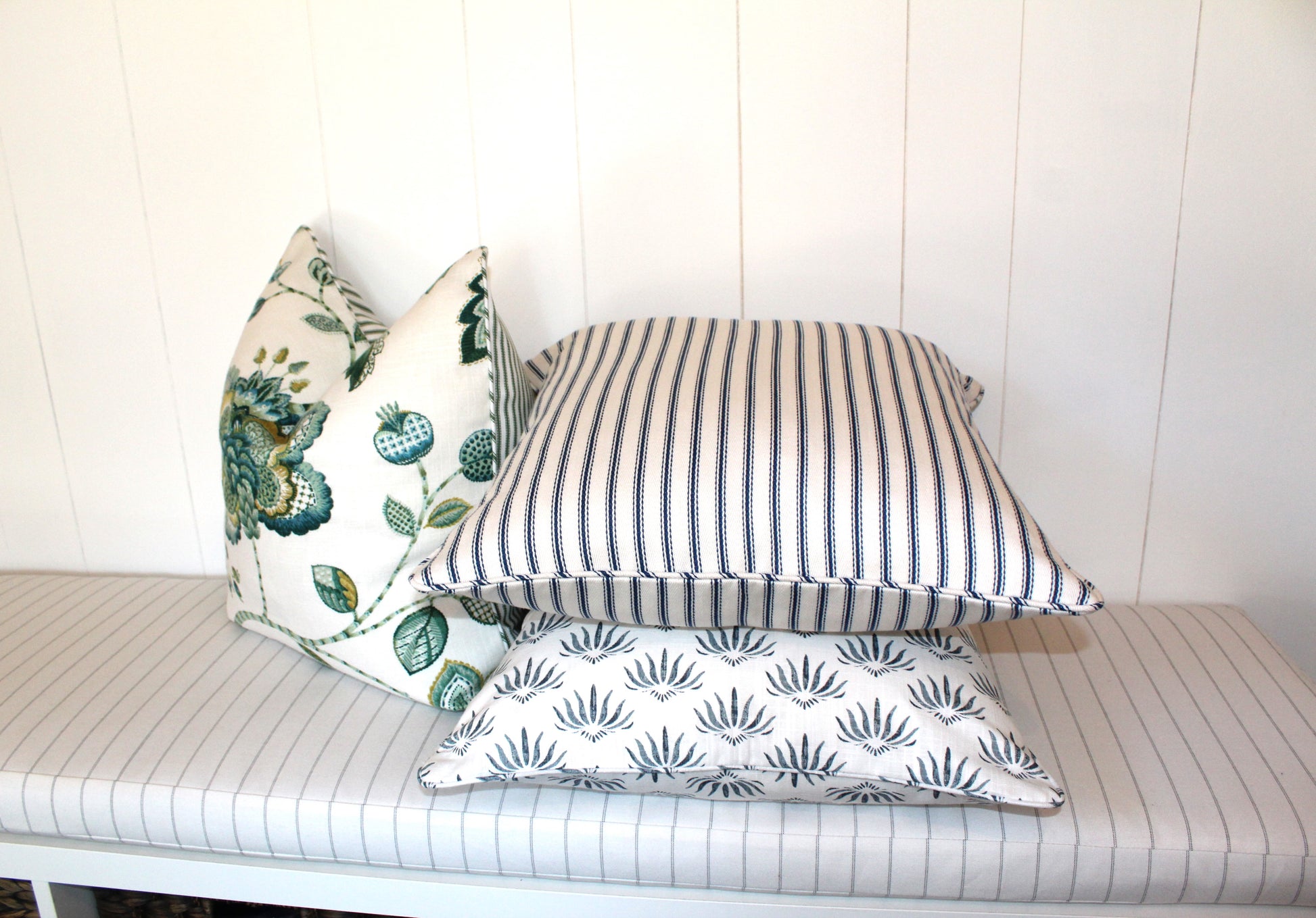 It has linen looking finish. Background is clean white with navy and other shade of blue watercolor print.