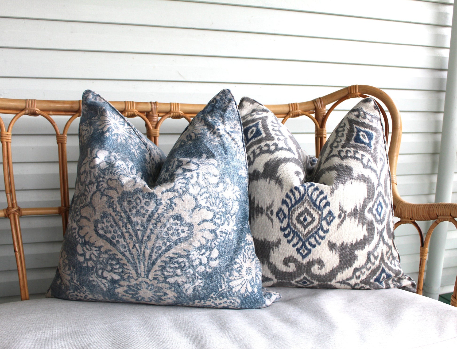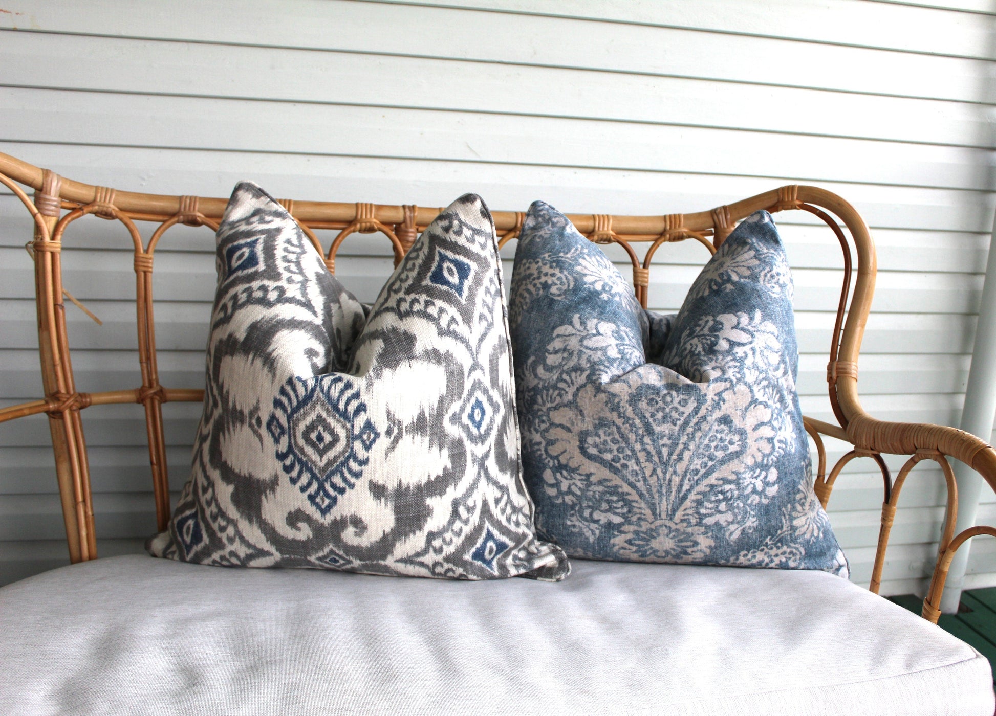 Hamilton Denim cushion covers feature a centered pattern on each cover.