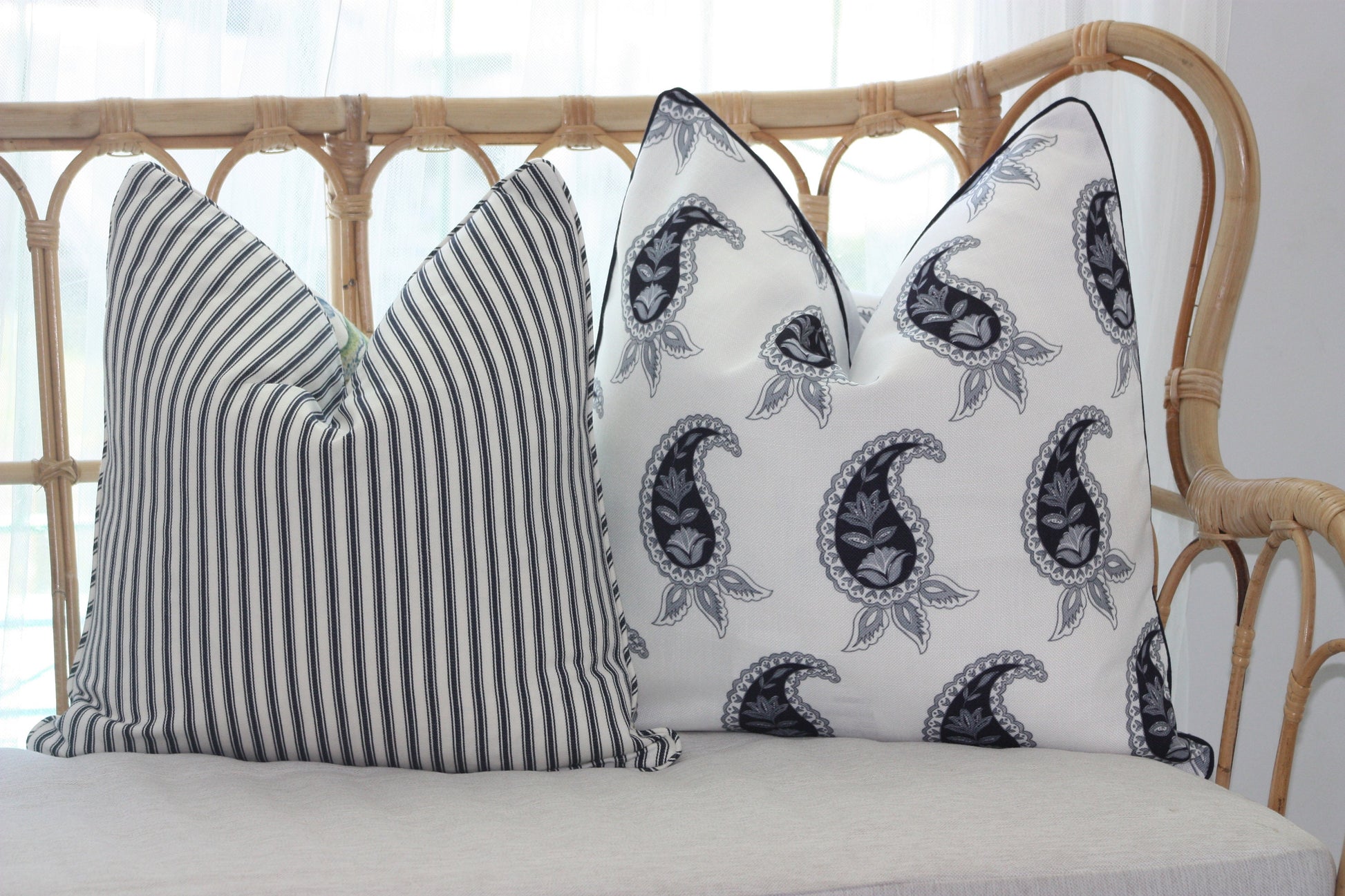This cushion covers have same fabric on both sides and self piping around the edges.