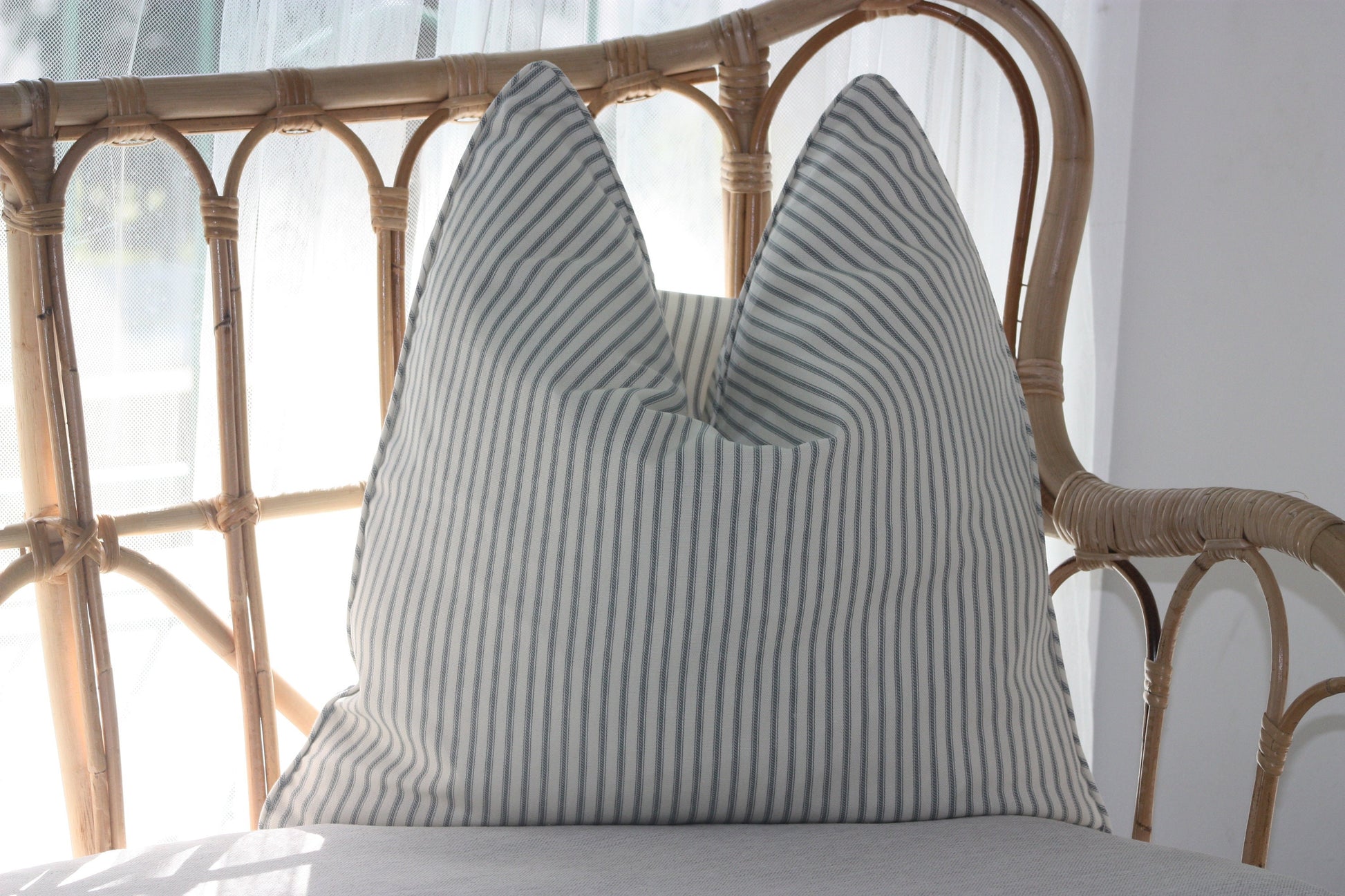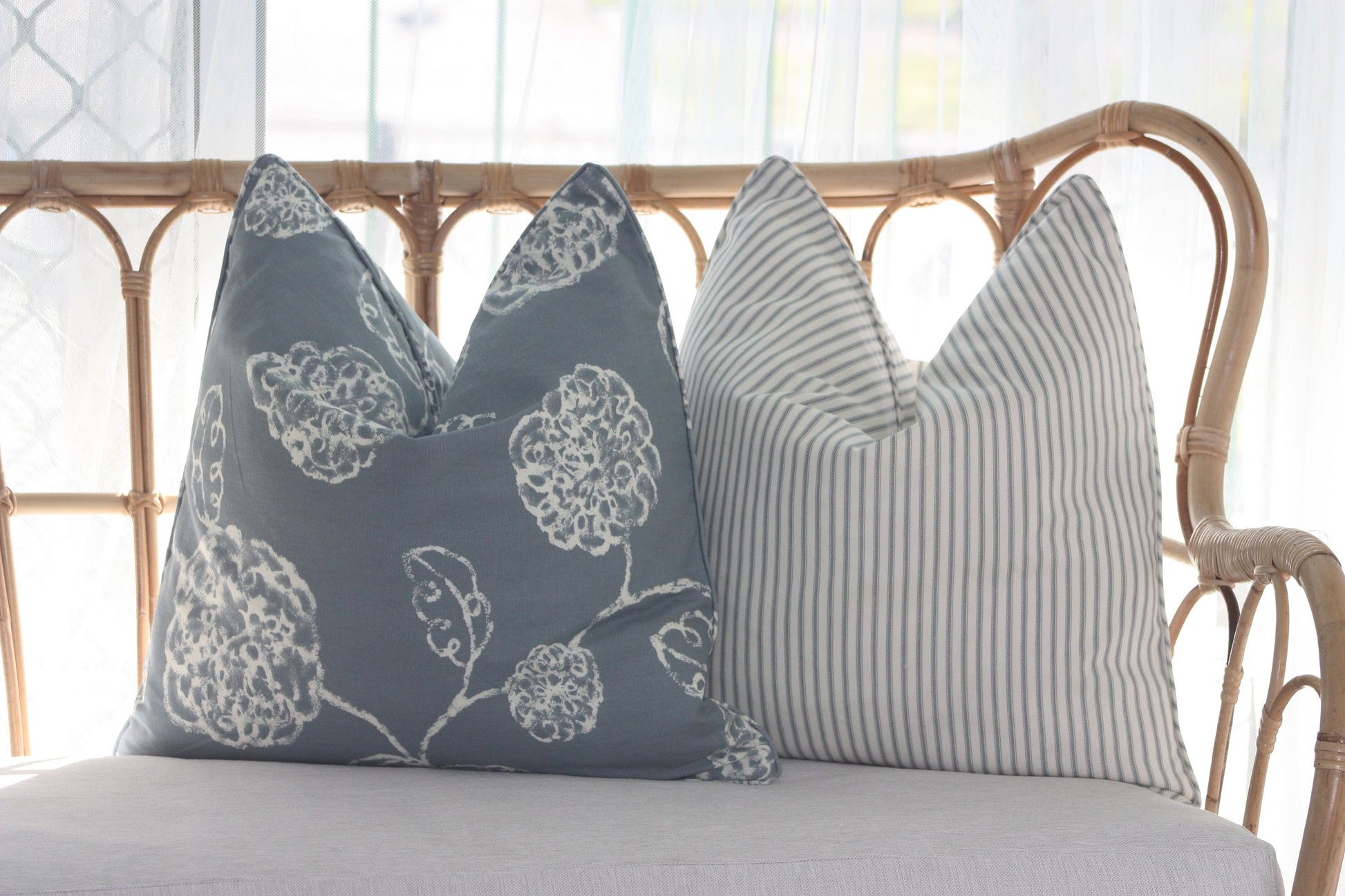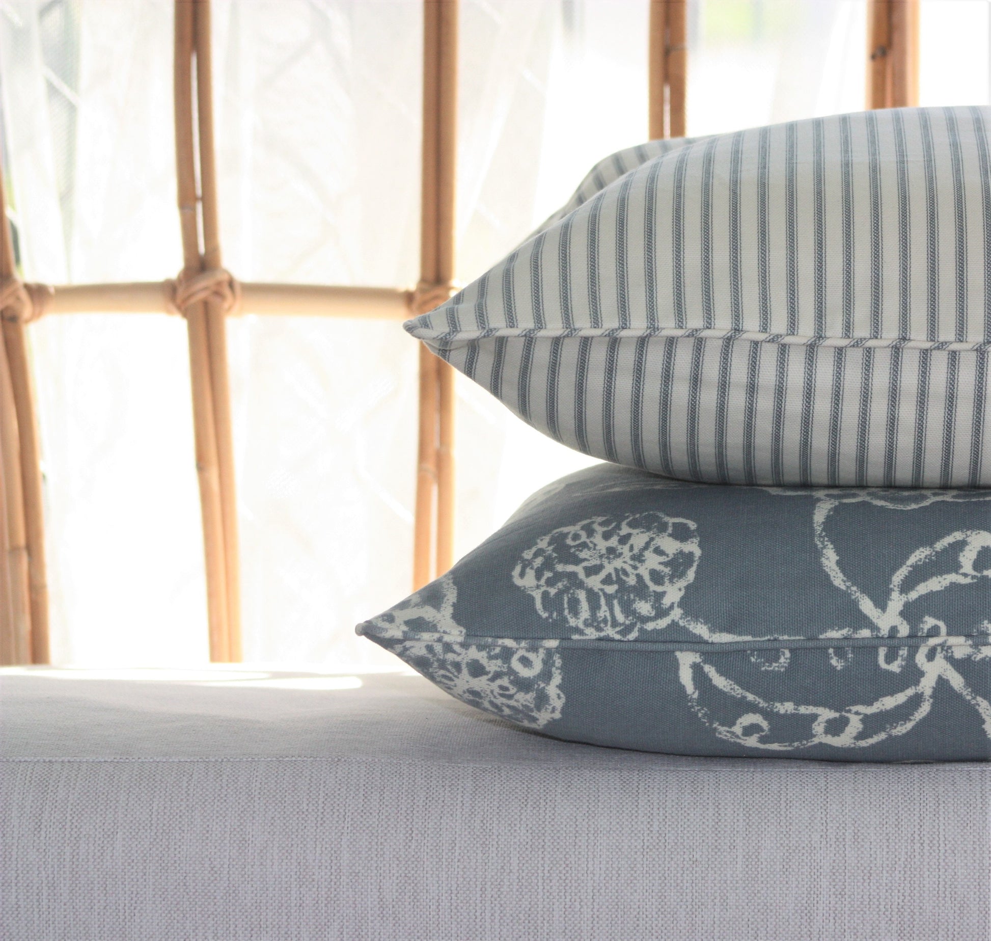 Duck egg Blue Floral and Ticking Stripe cushion covers