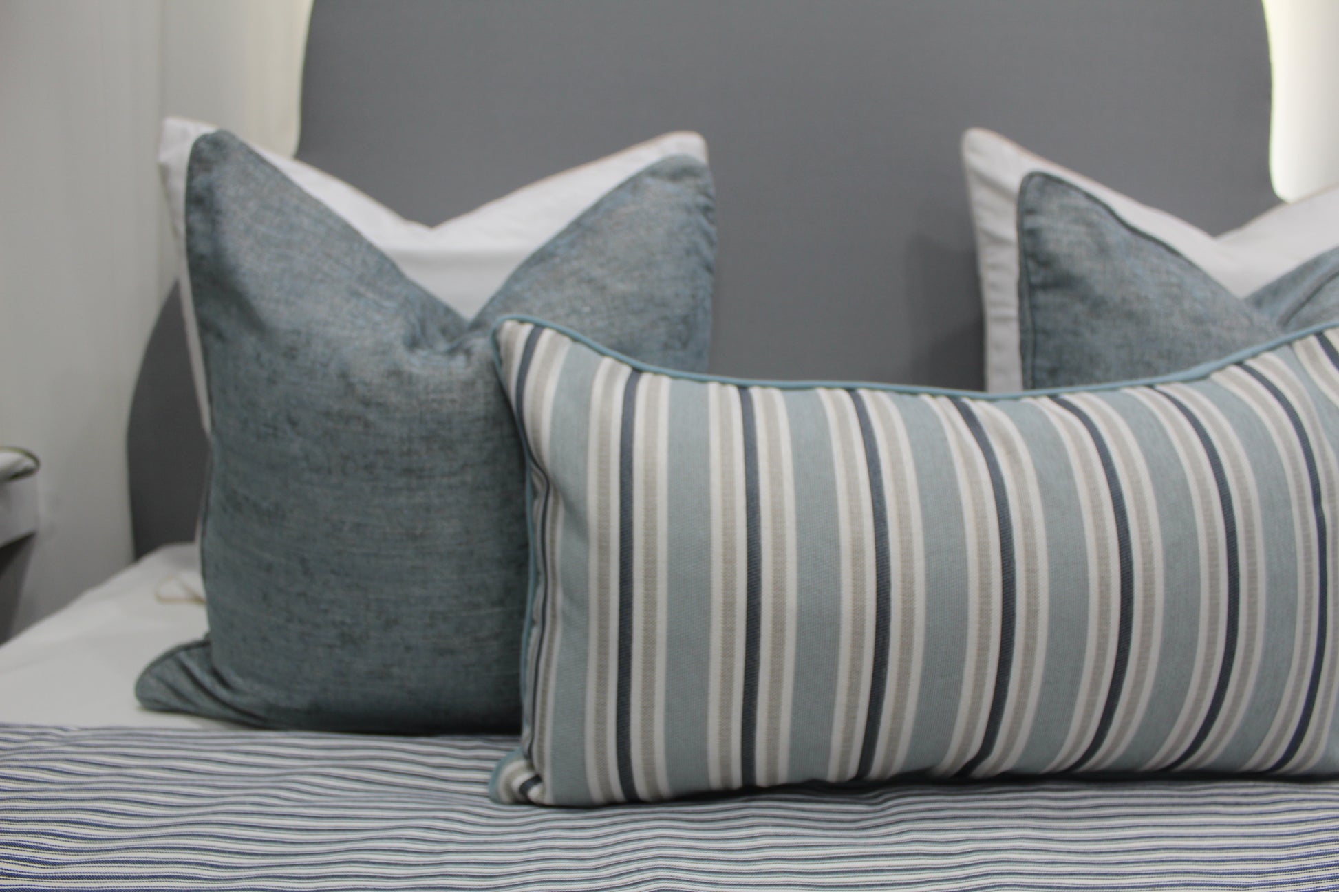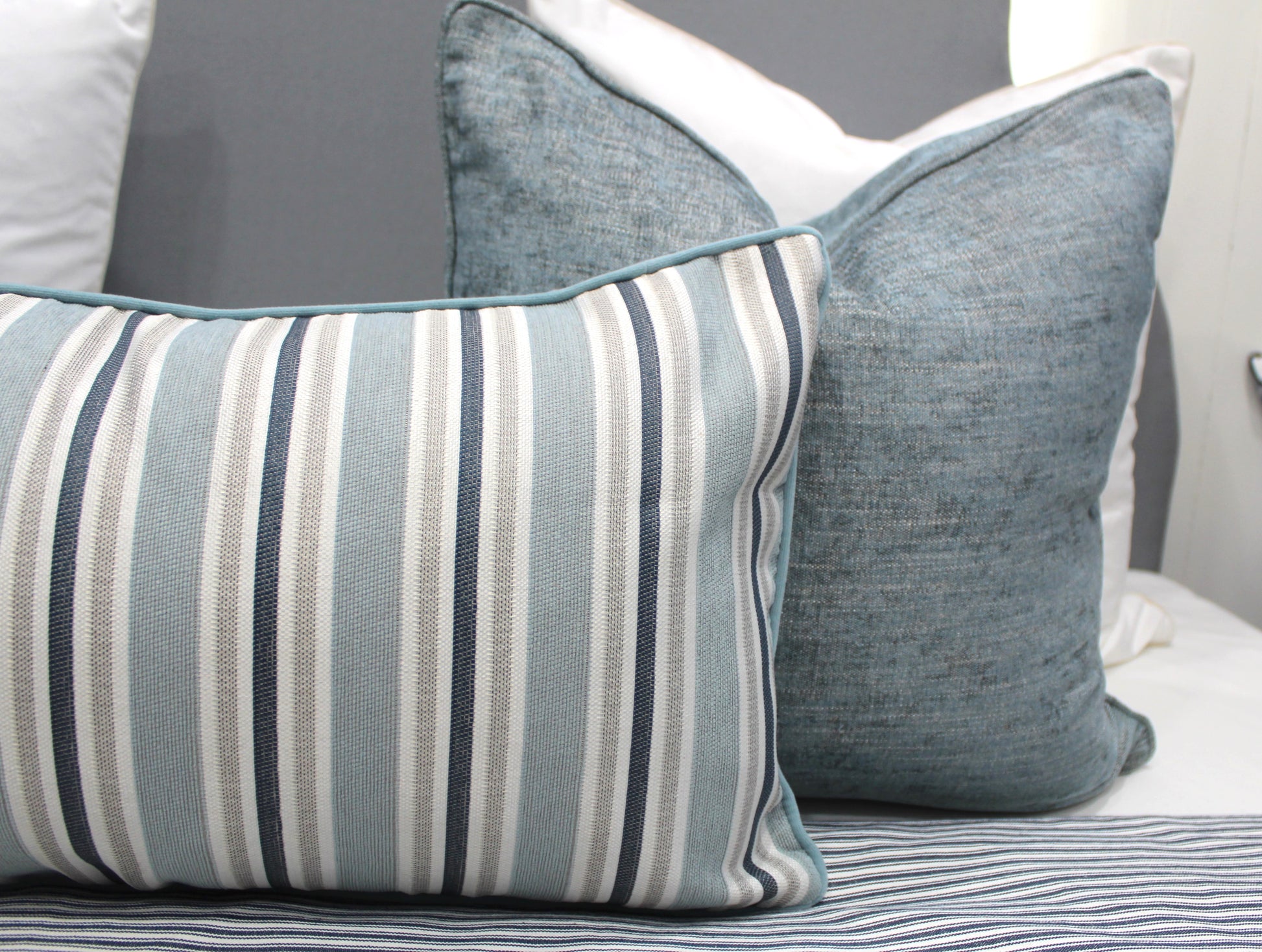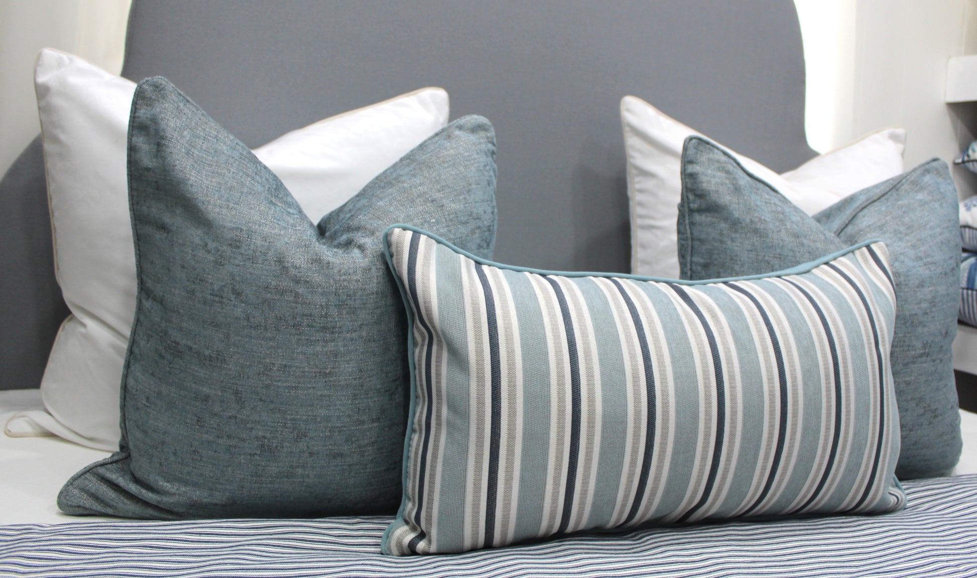 Colors include duck egg, beige tones, a bit of navy and sky blue, combined into a center piece that brings in all the colors together in Coastal to Hampton style homes.