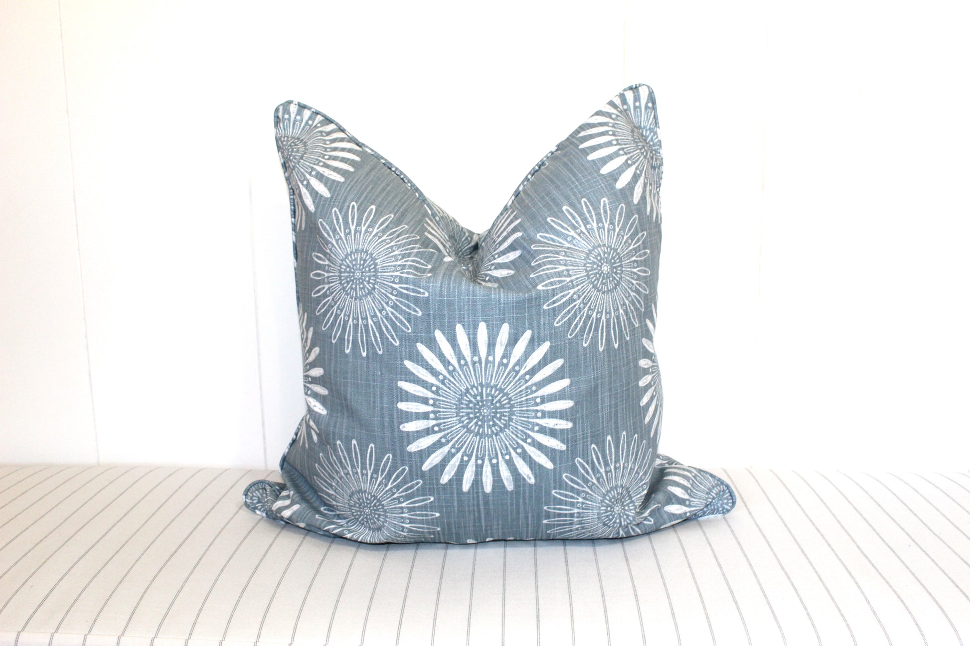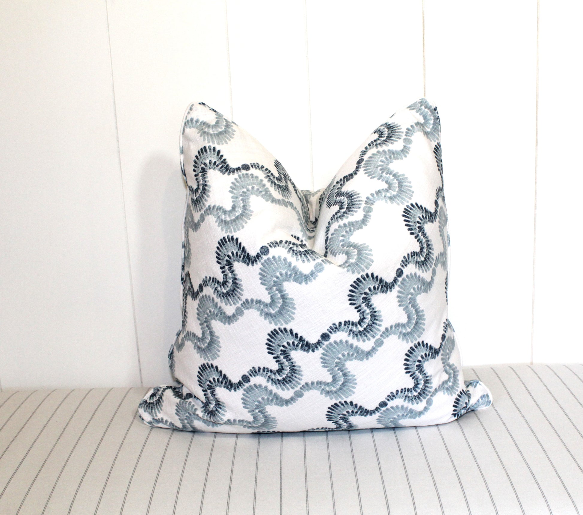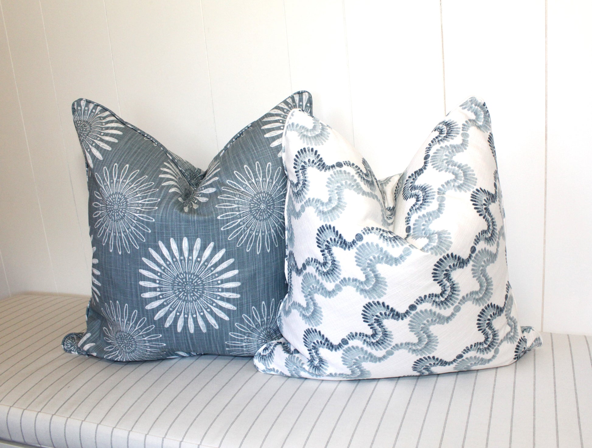 Every cover includes a zipper and piping and is double-sided, with the same fabric used on either side.