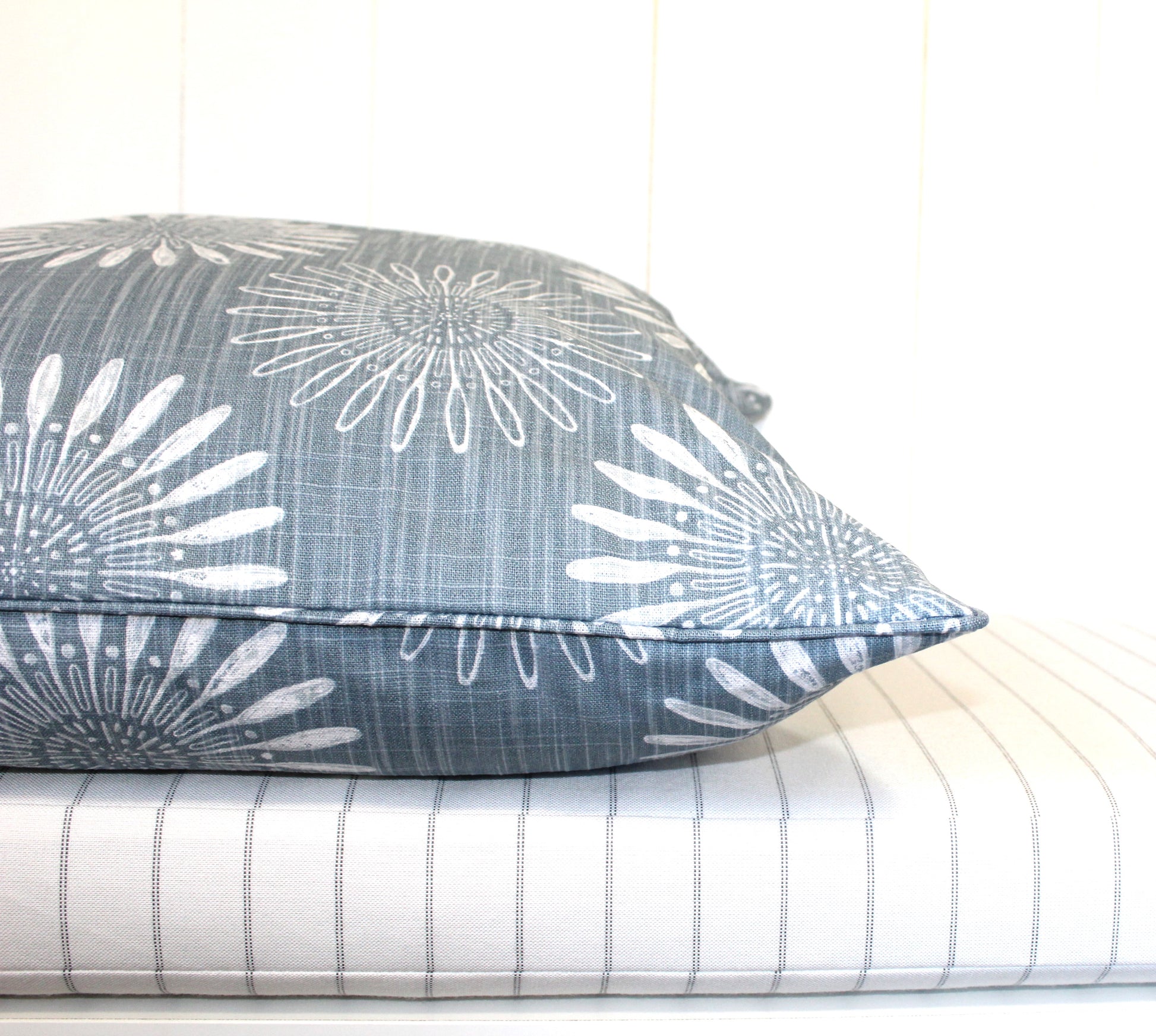 Our high-grade, imported US fabric is used to create Duck Egg Sunny Floral Cushion covers.