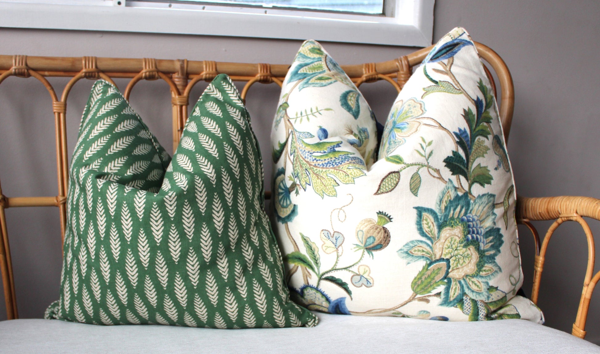 This cushion goes great with multiple cushion covers that has cream background and green colors in them.