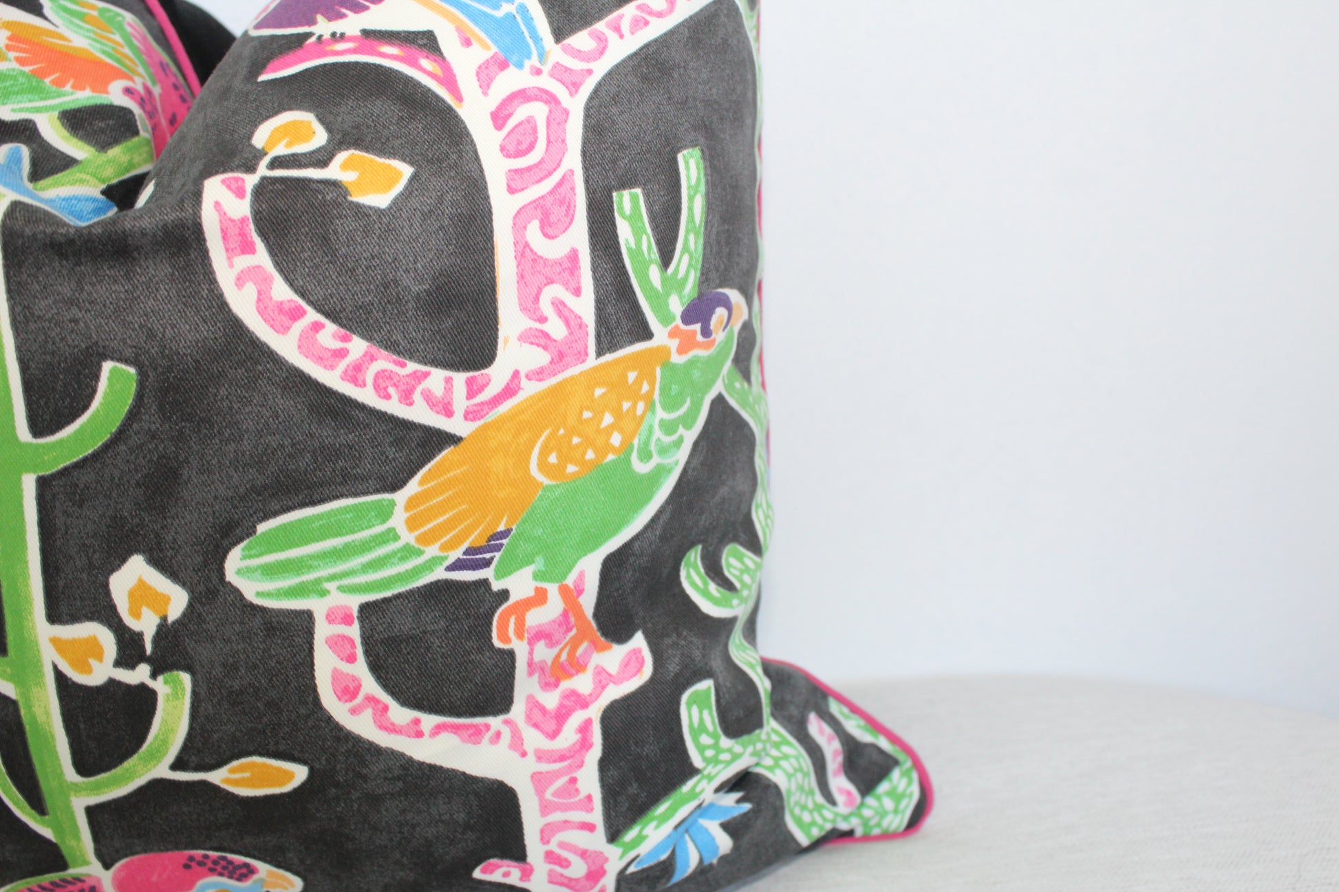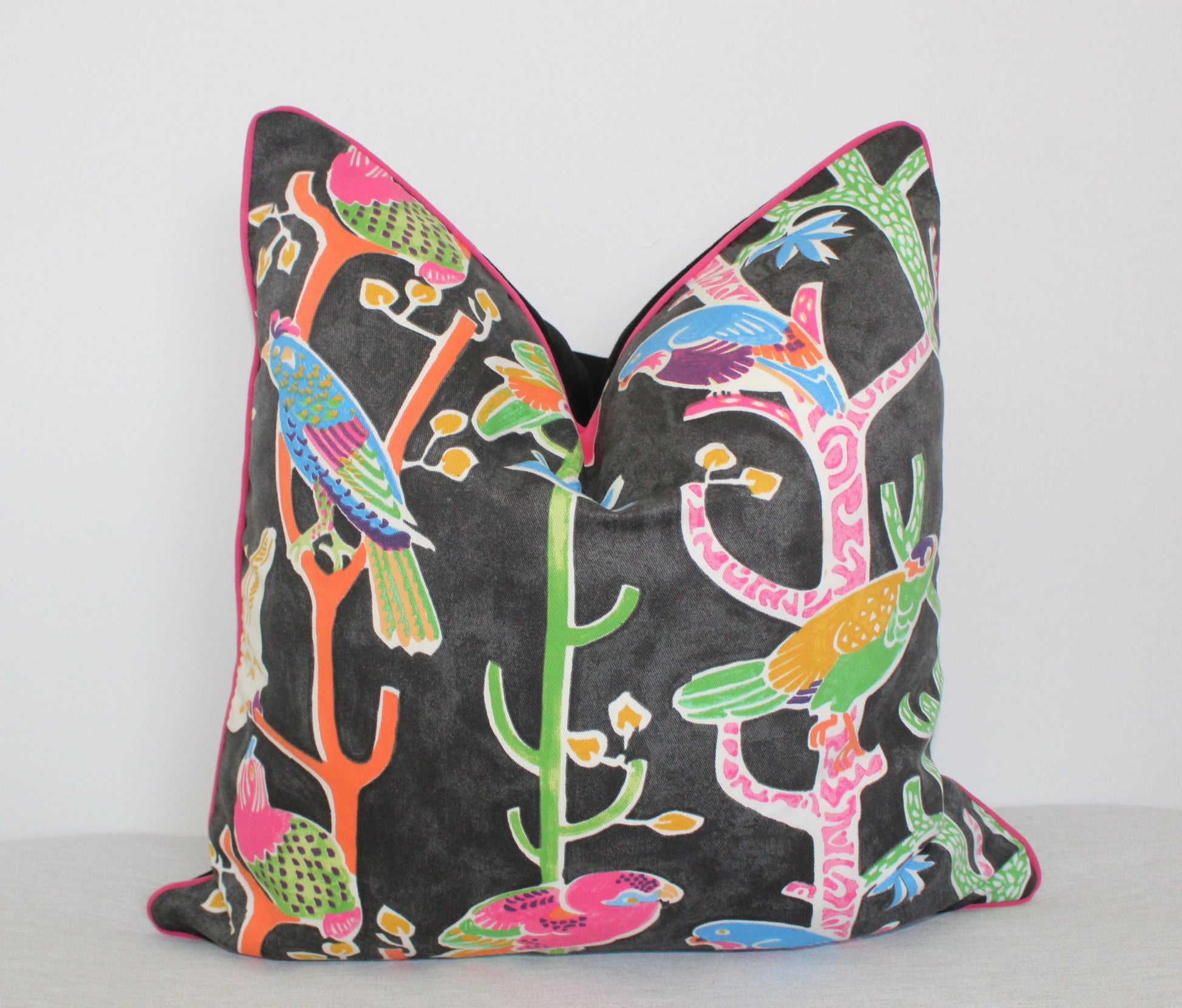 This beautiful cushion covers are made using imported US designer brand fabric. It has dusty black background with bright colors.