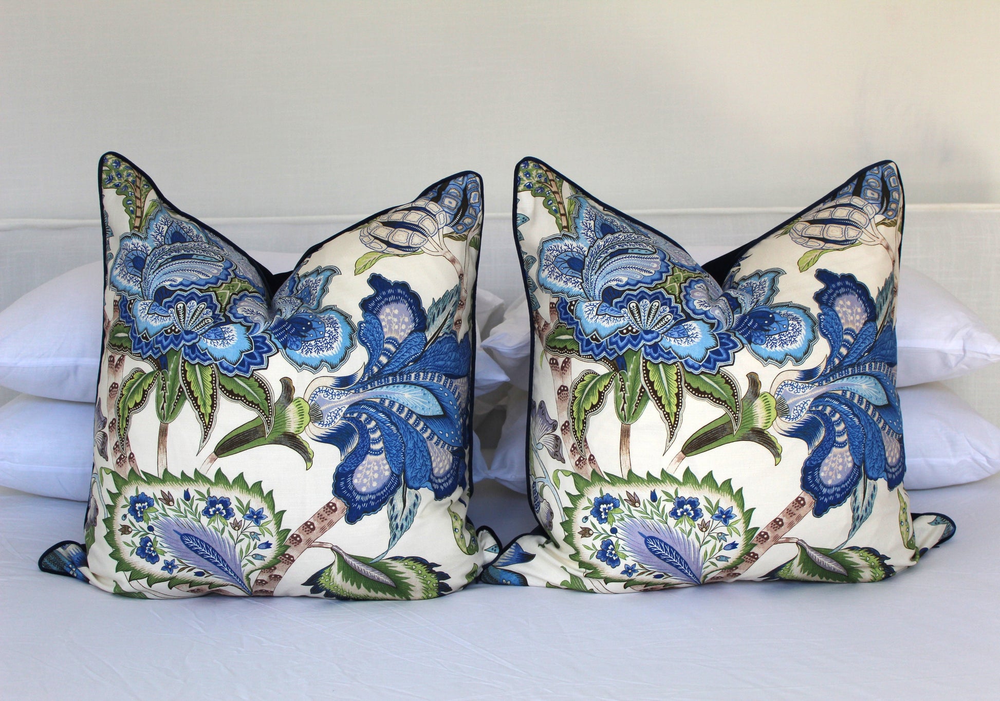 All cushion cover sizes are available . All cushion covers are priced per cover only. Inserts are not included. Every cover has beautiful navy piping and finished with zipper at bottom.