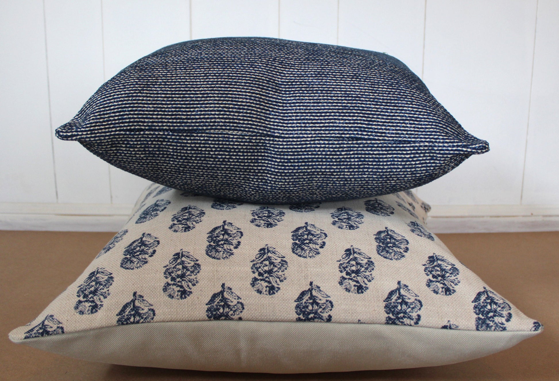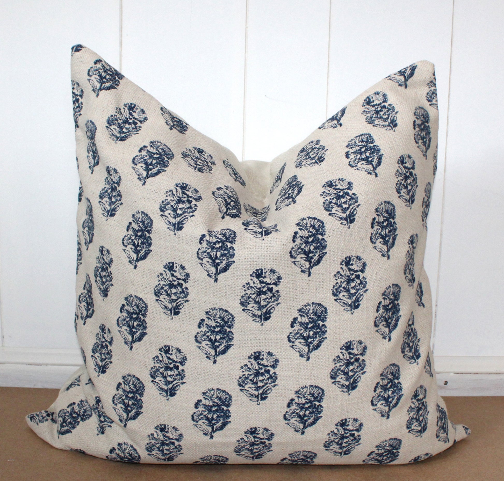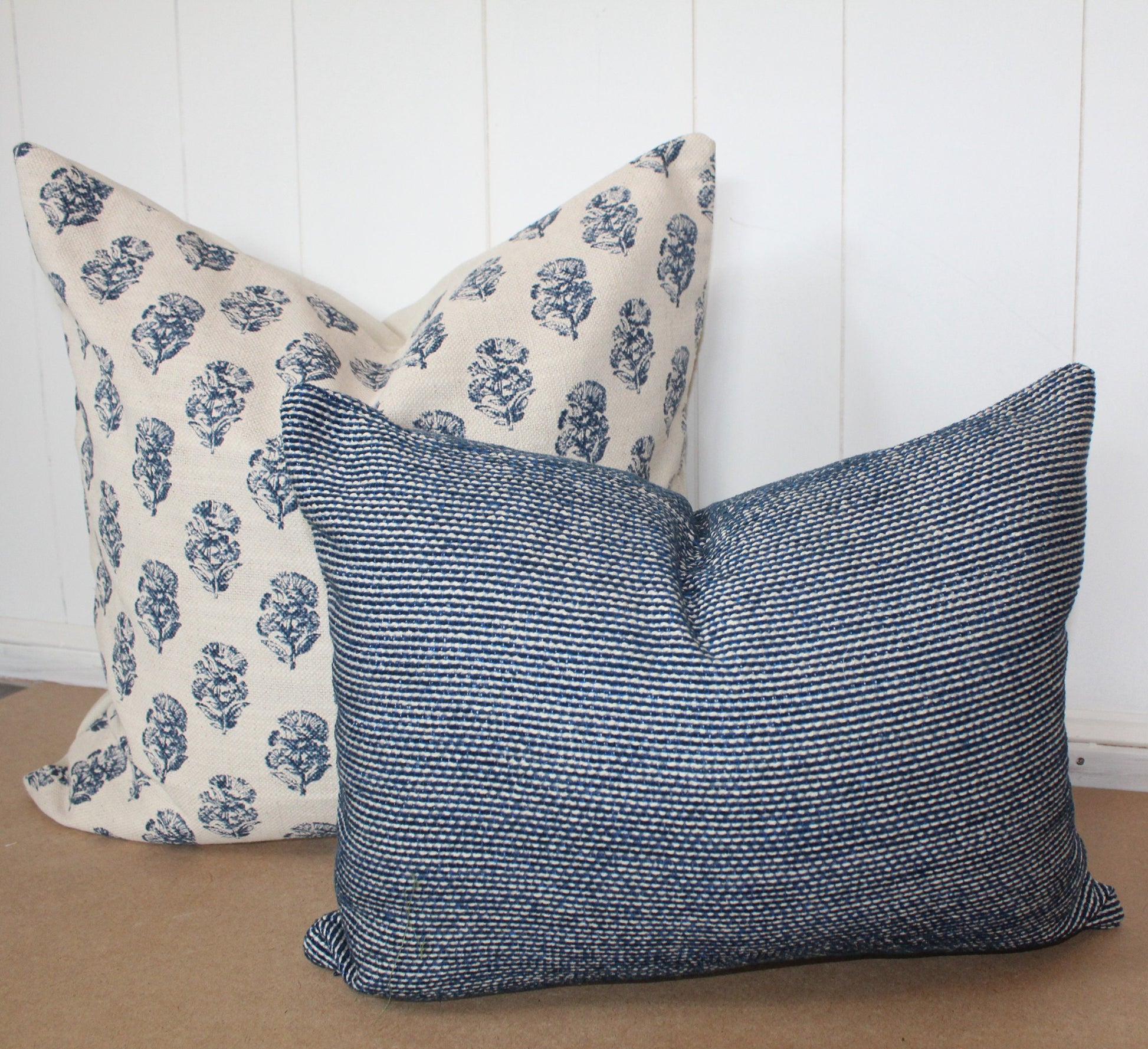 Our 'Blue Poppies' pillow covers features a delicate floral motif pattern hand block printed using traditional printing techniques, we love the soft color and texture that gives this fabric so much character. Made using a soft textured linen, it is a bit of modern, a bit of boho, and loads of warmth. We’re dreaming of these for farmhouse style spaces filled with light and greenery. The neutral color palette allows you to mix with a variety of other pillows.