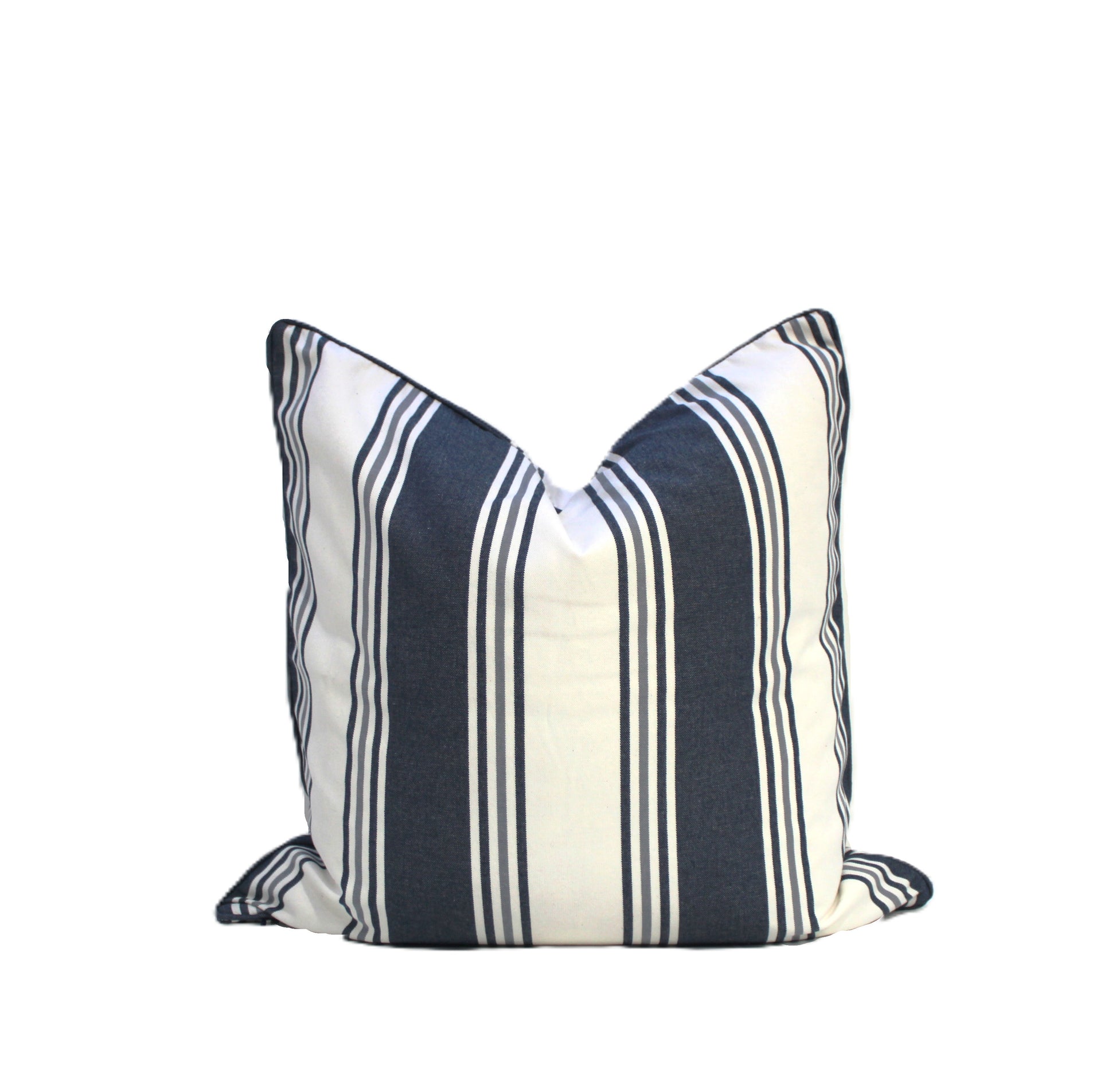 Navy Large Stripe Cushion Cover by Acacia Textiles