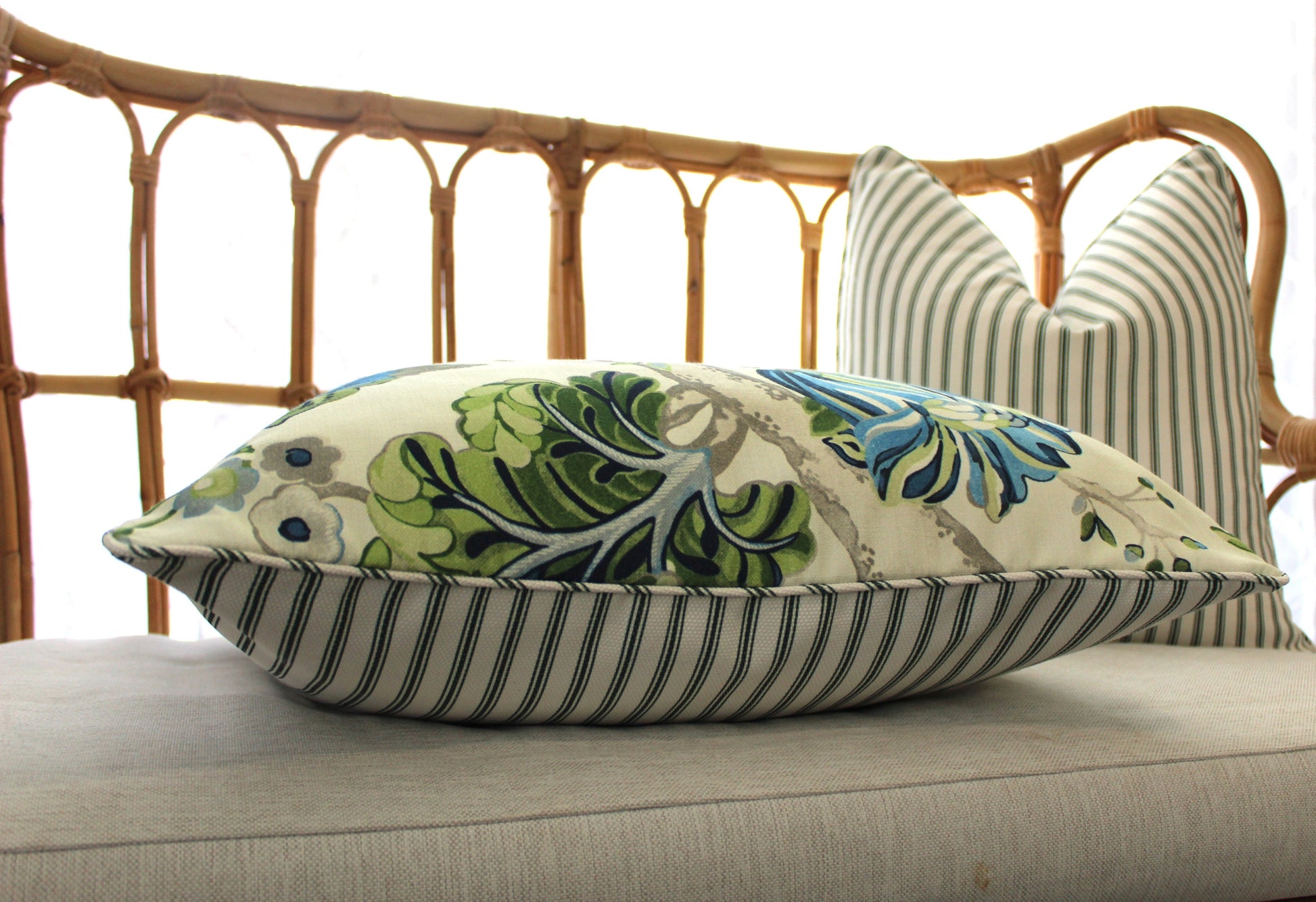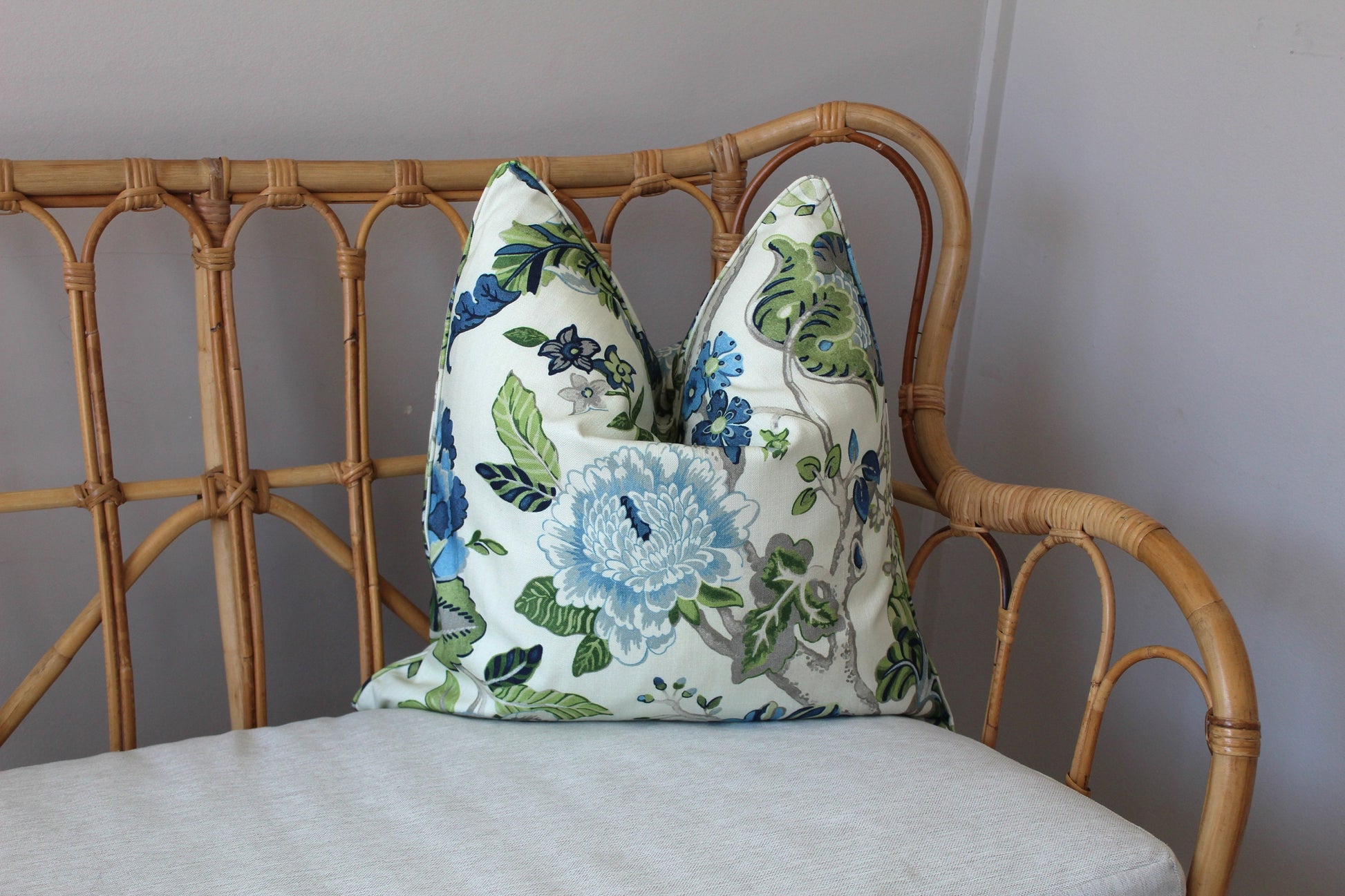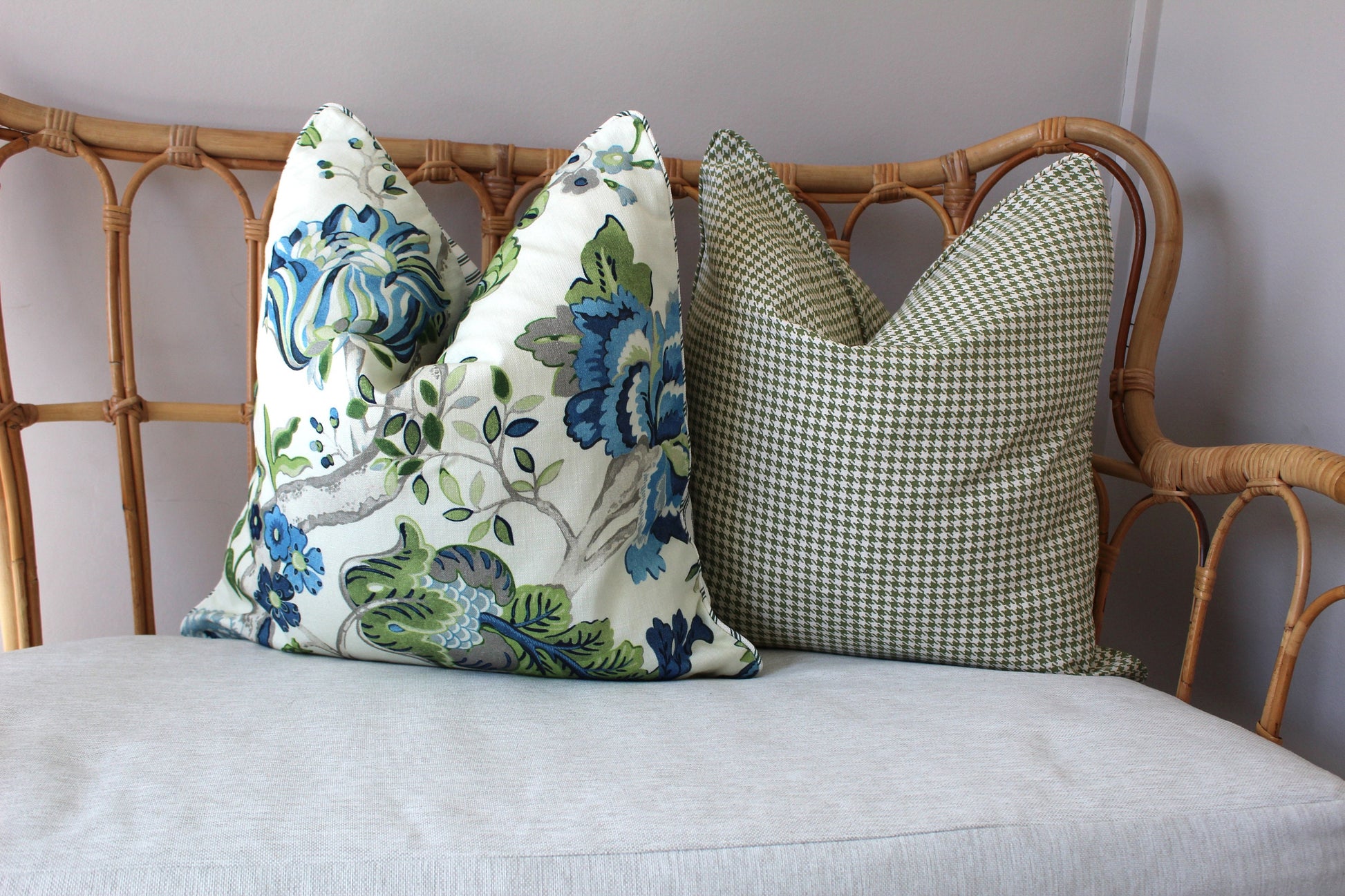 This beautiful pattern fabric has perfect amount of greens, navy and sky blue/baby blue. If you are into classic Hampton Style or want to add sophisticated green to your style this cushion cover will be perfect. This fabric is from a well known designer and imported from US