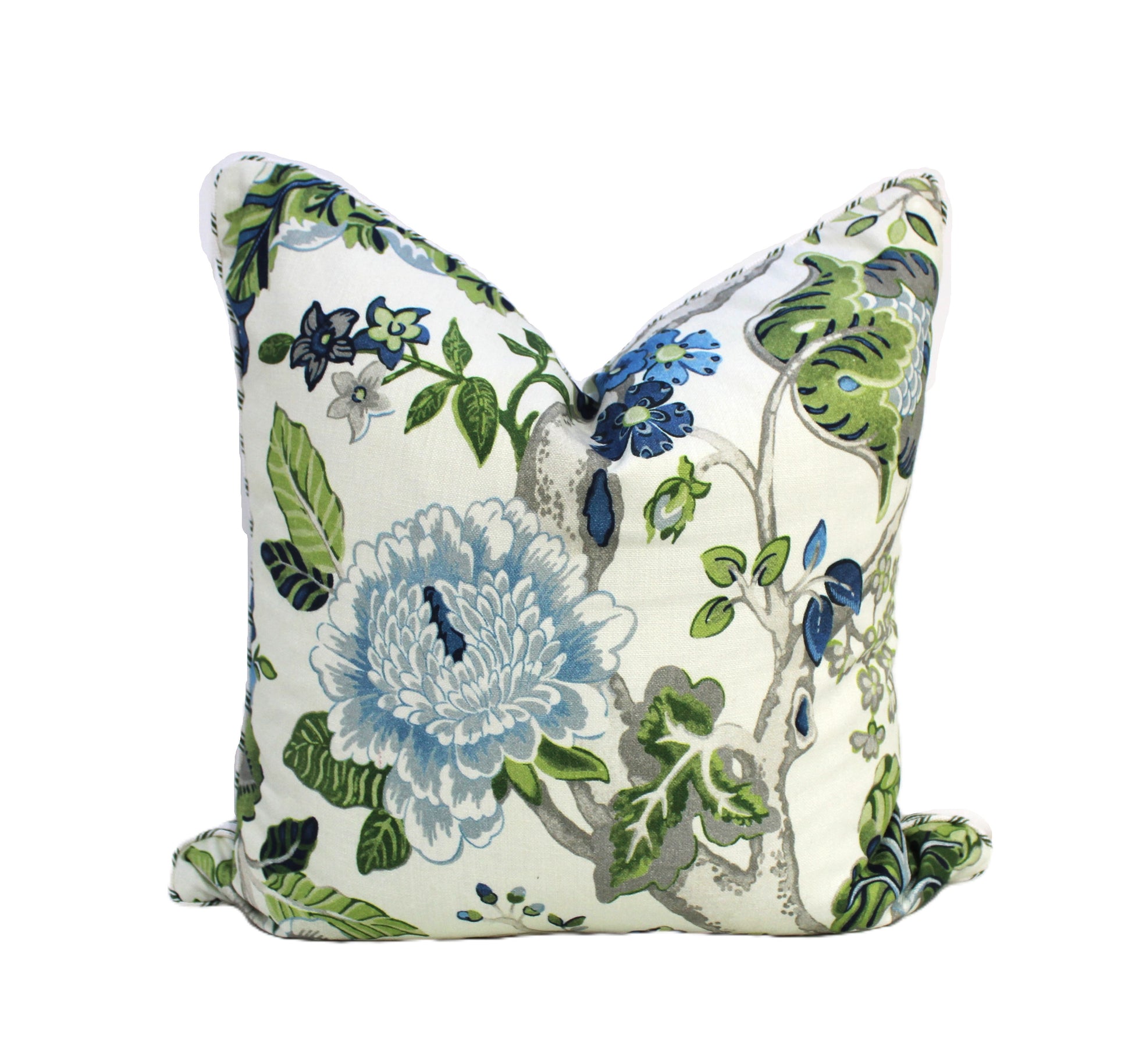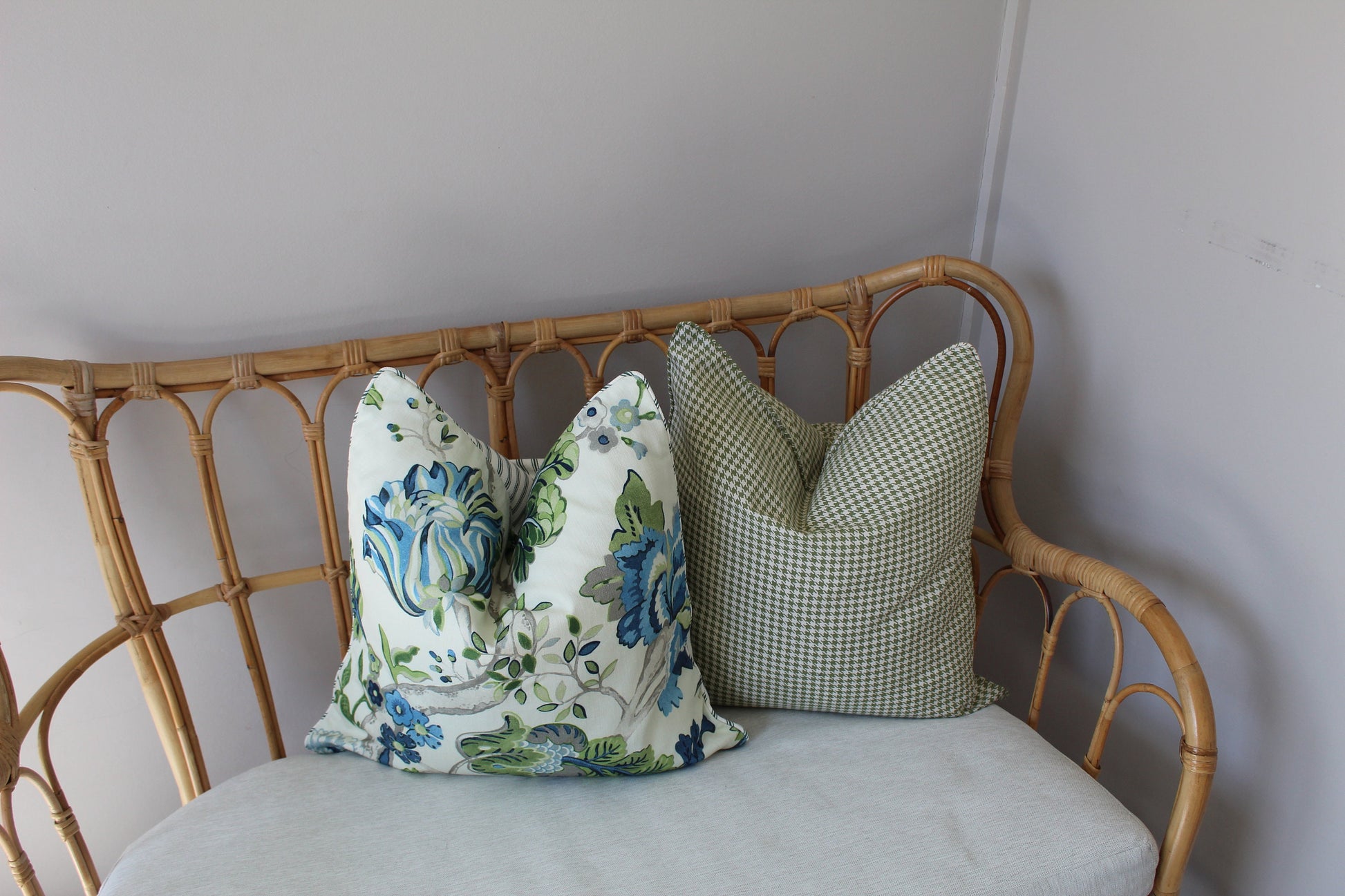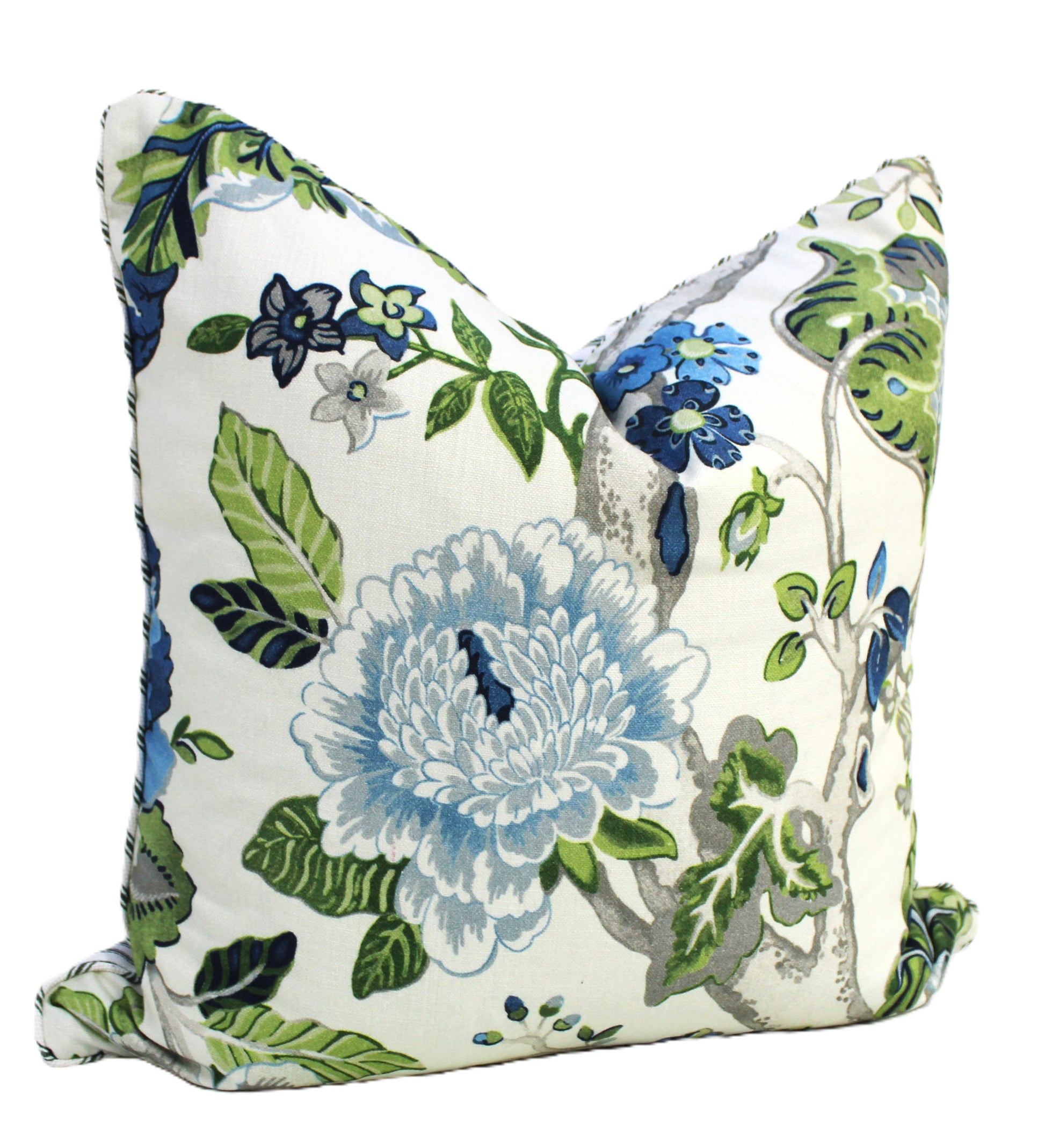 This beautiful pattern fabric has perfect amount of greens, navy and sky blue/baby blue. If you are into classic Hampton Style or want to add sophisticated green to your style this cushion cover will be perfect. This fabric is from a well known designer and imported from US