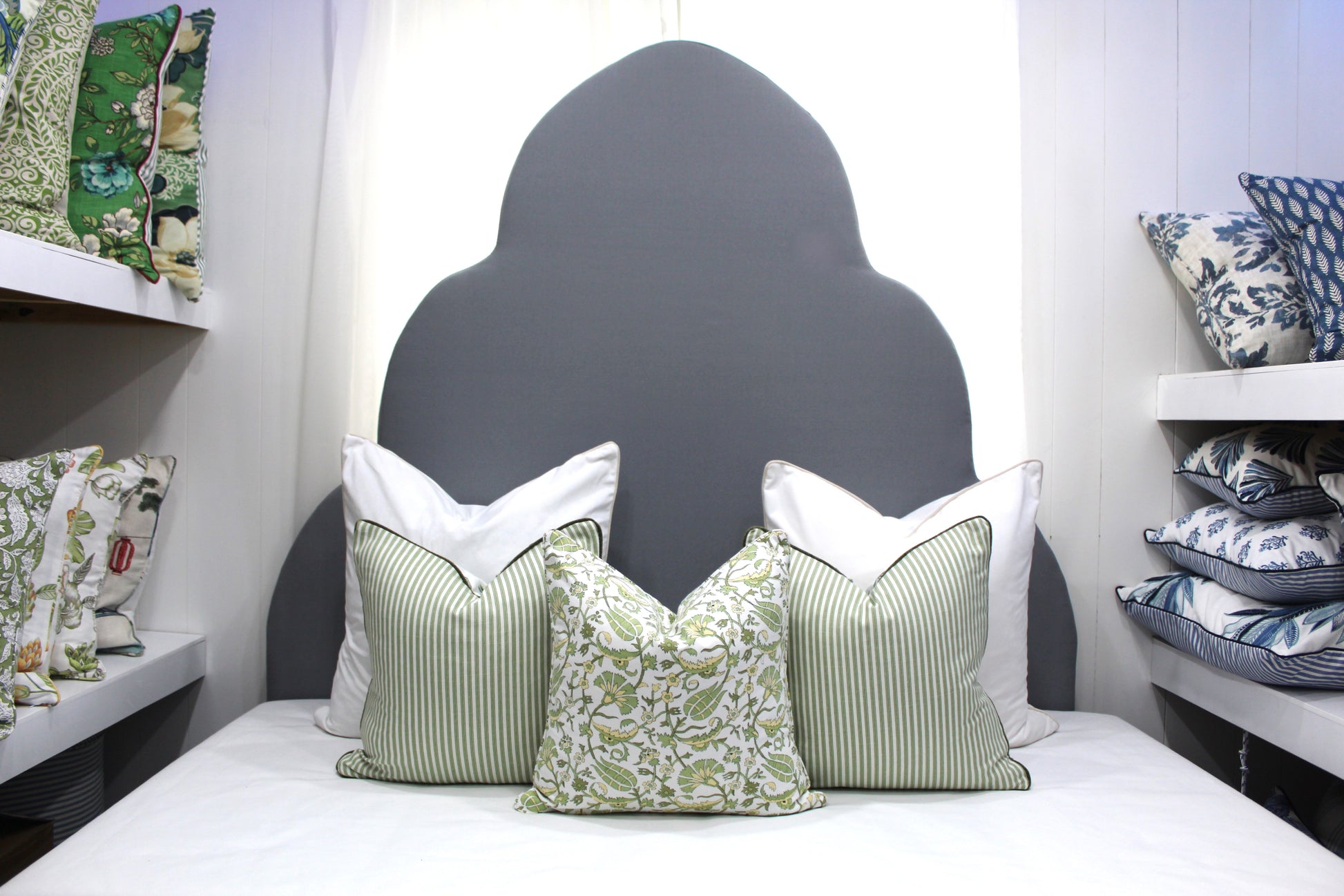 It goes amazingly well with sage green ticking cushion covers and taupe grey cushion covers.