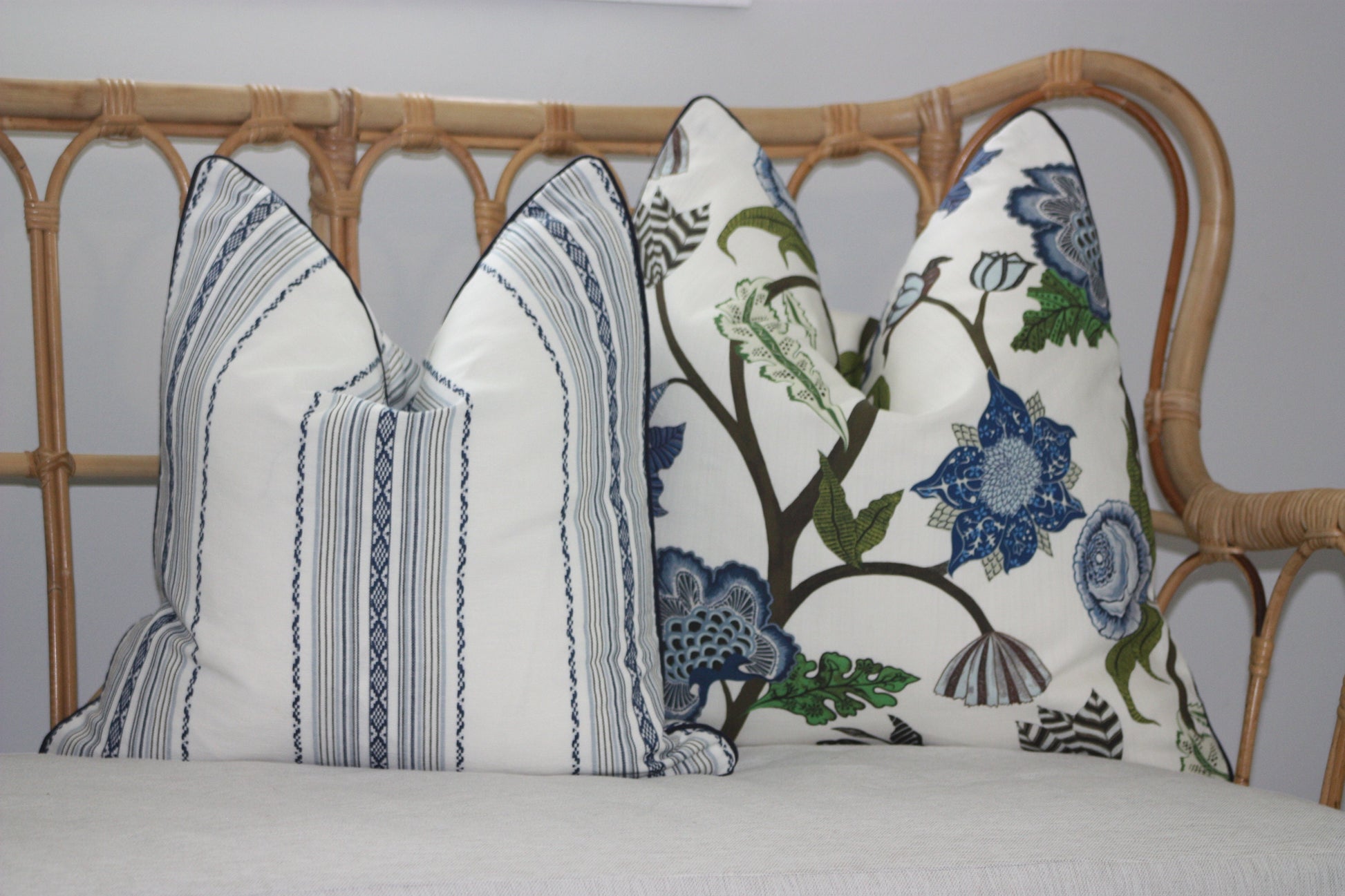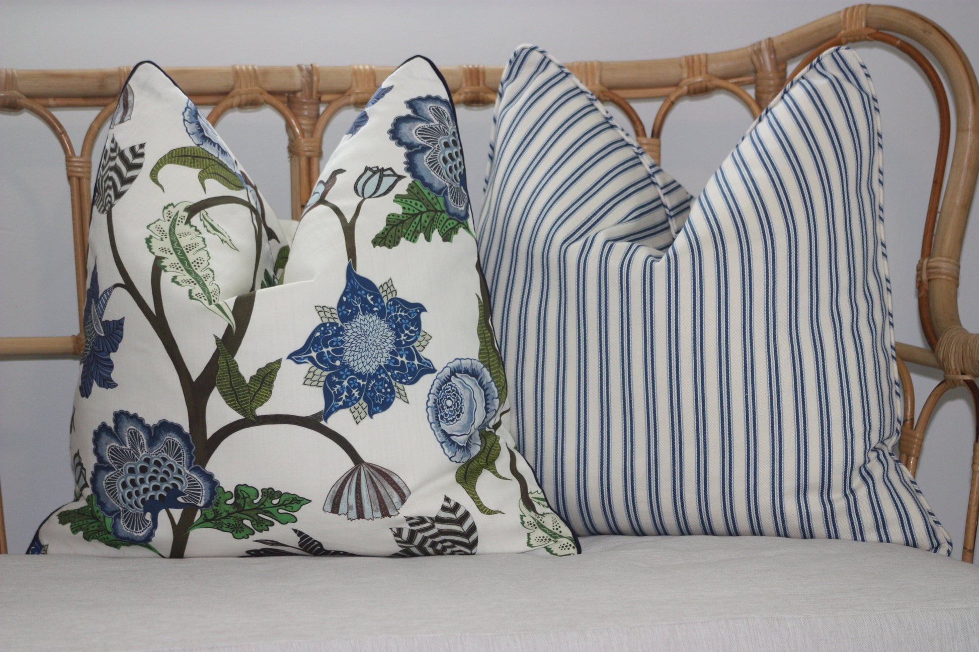 You can choose to have solid cotton backing or choose one of the stripes for backing to make your cushion covers reversible.