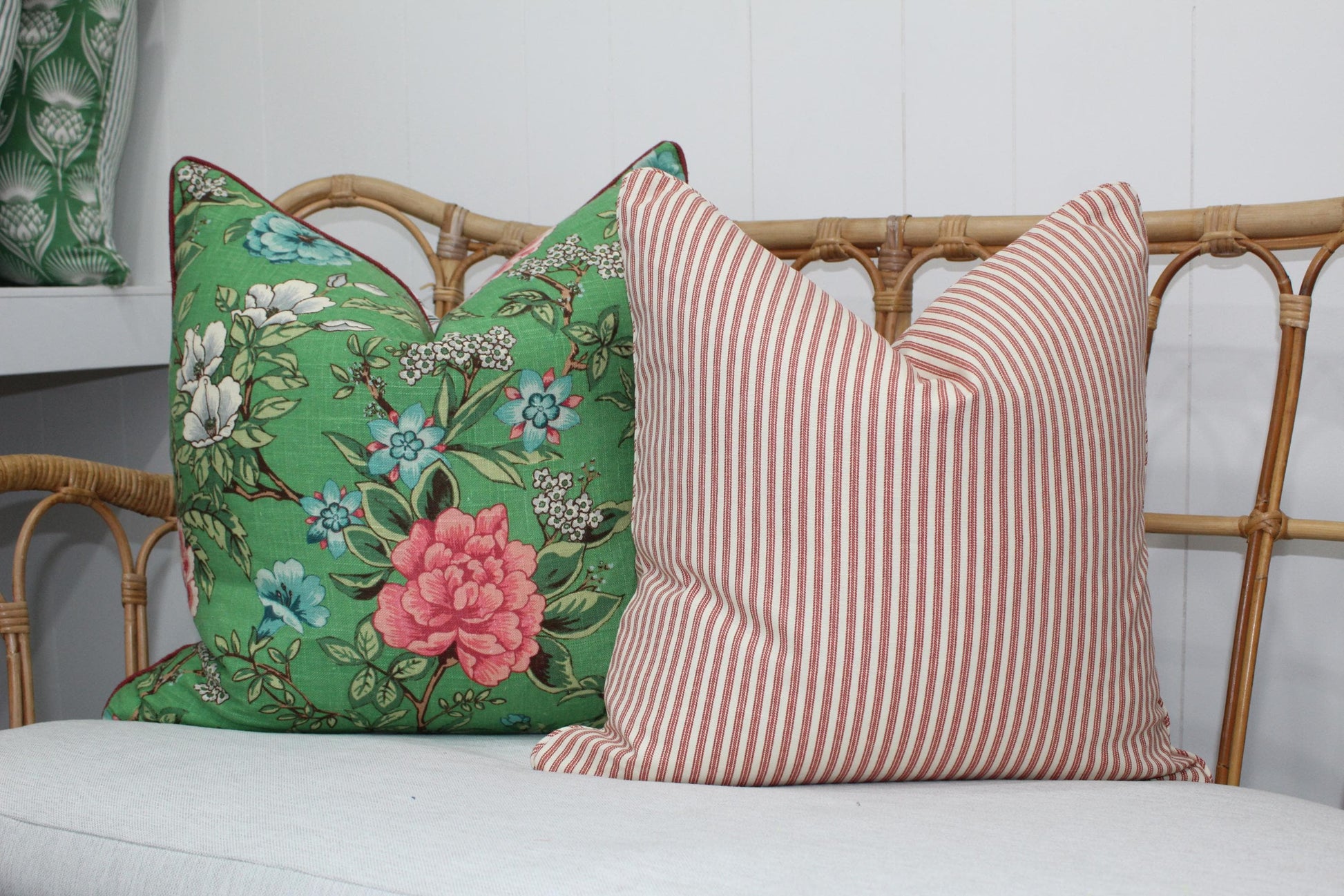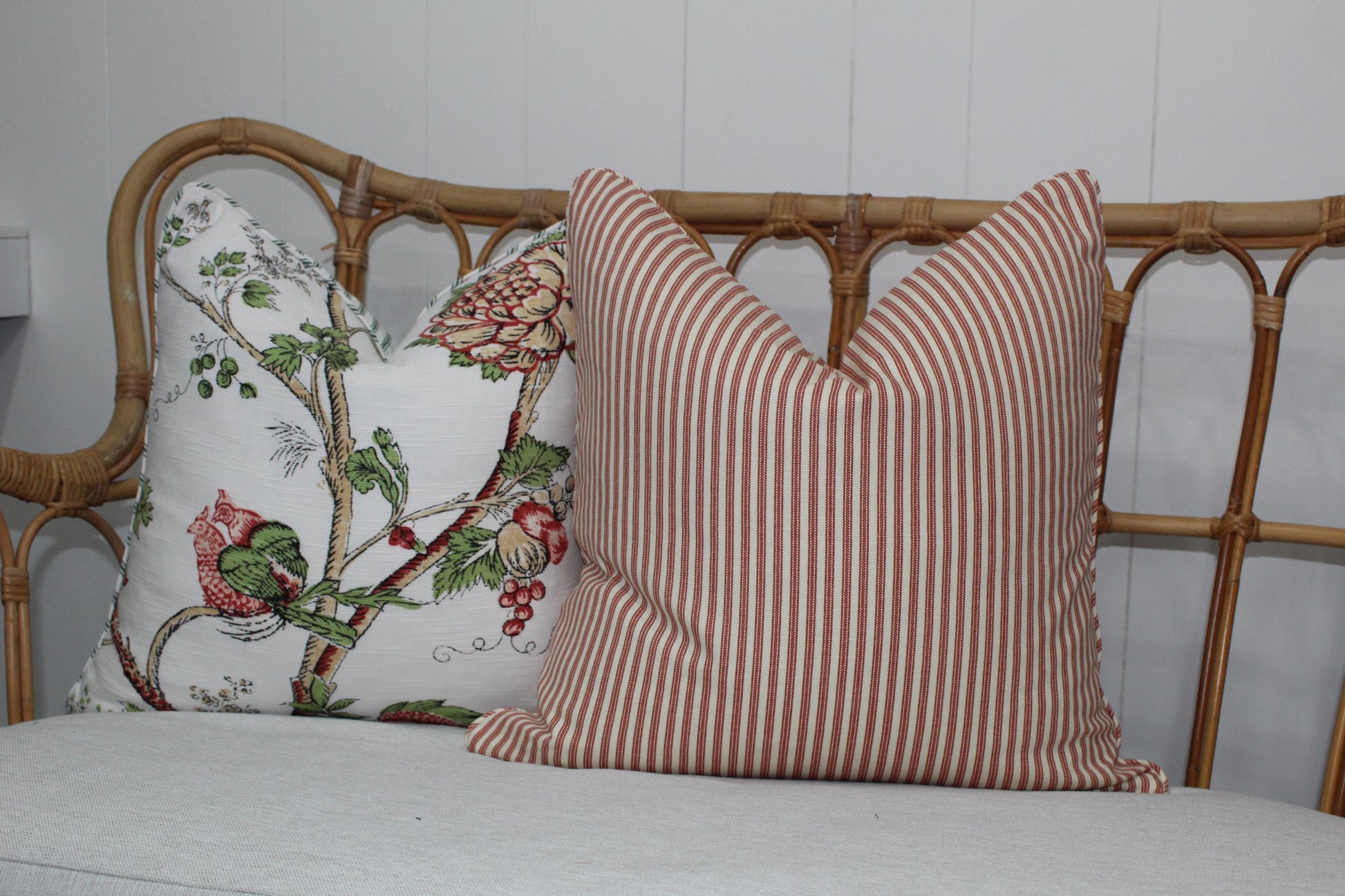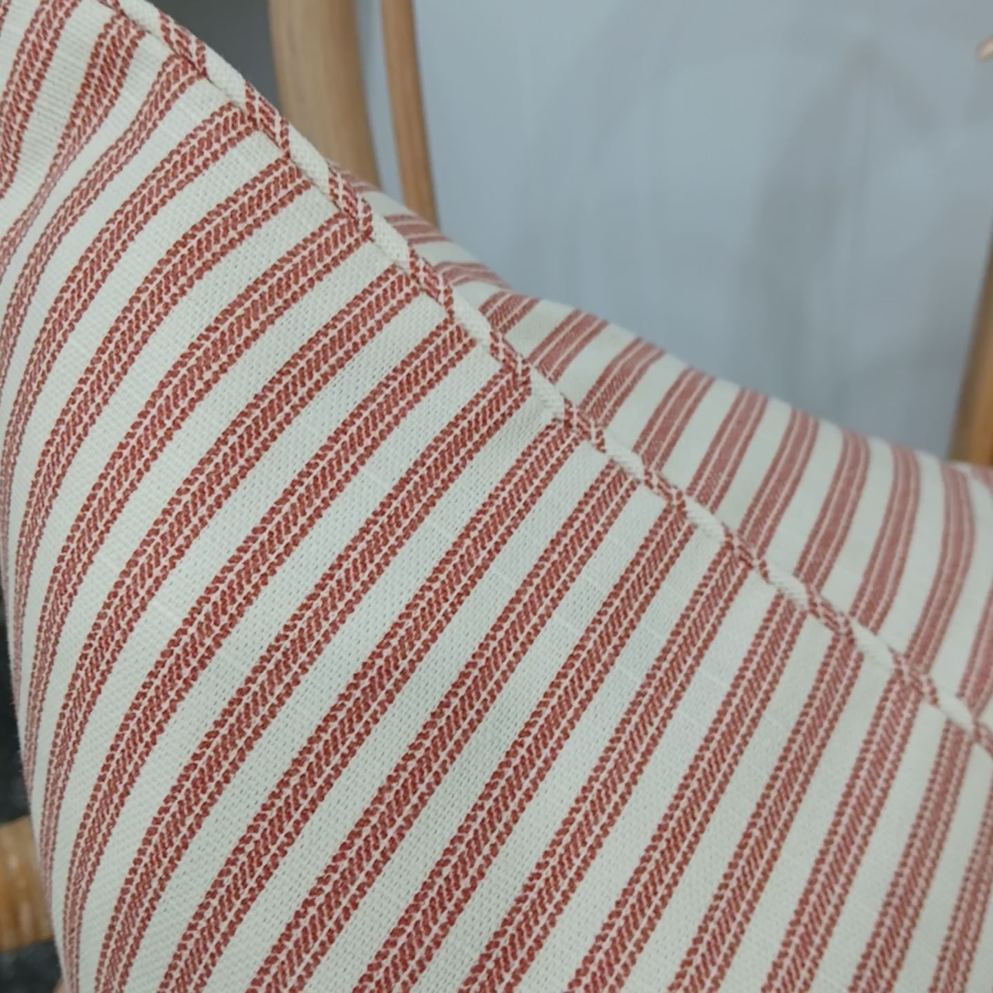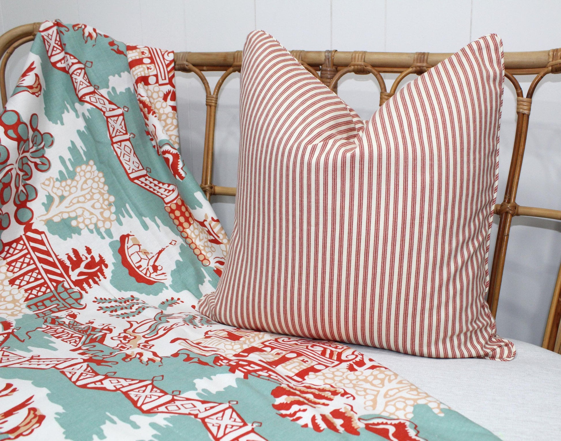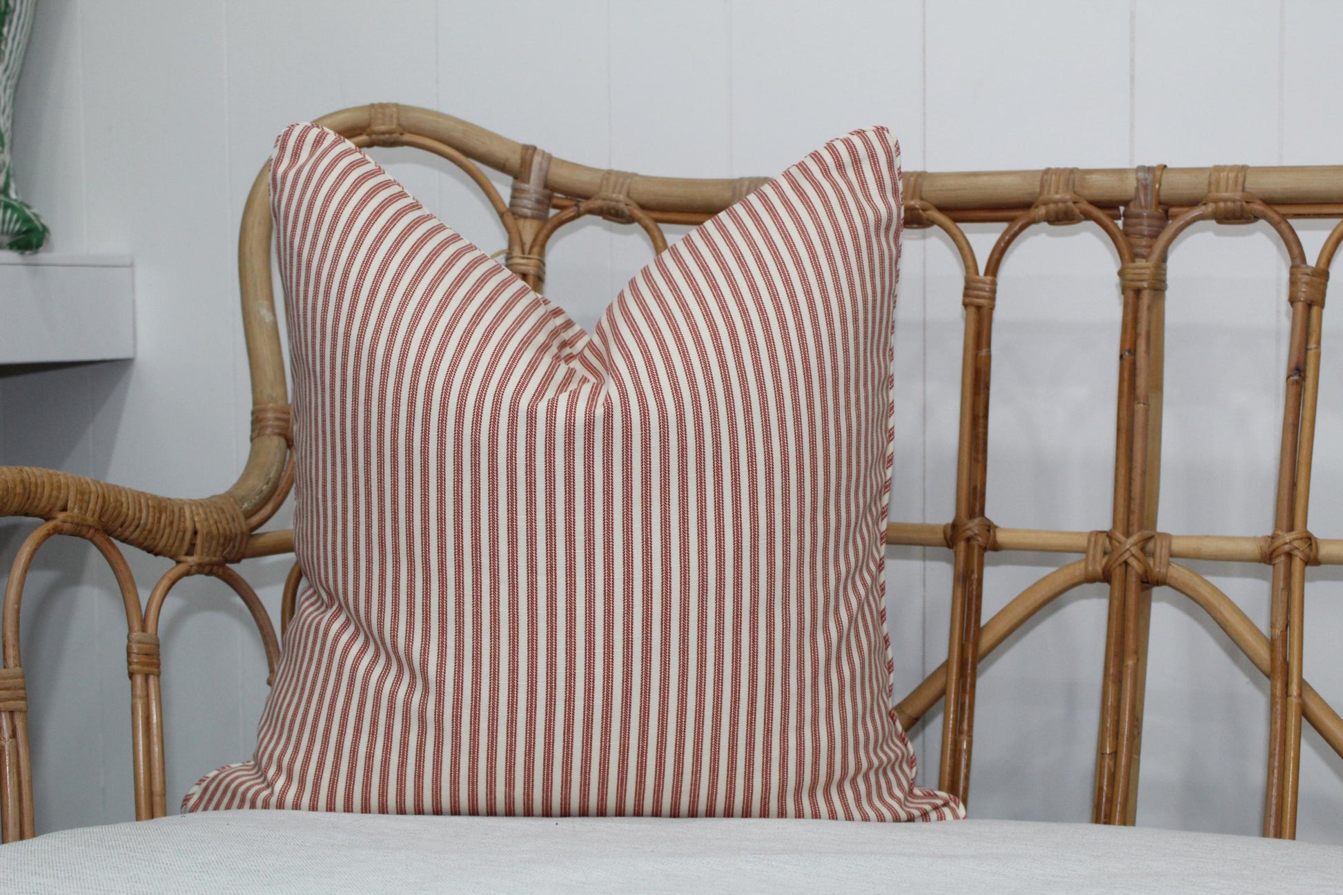 Red Ticking Stripe cushion Covers. Australian made cushion covers.