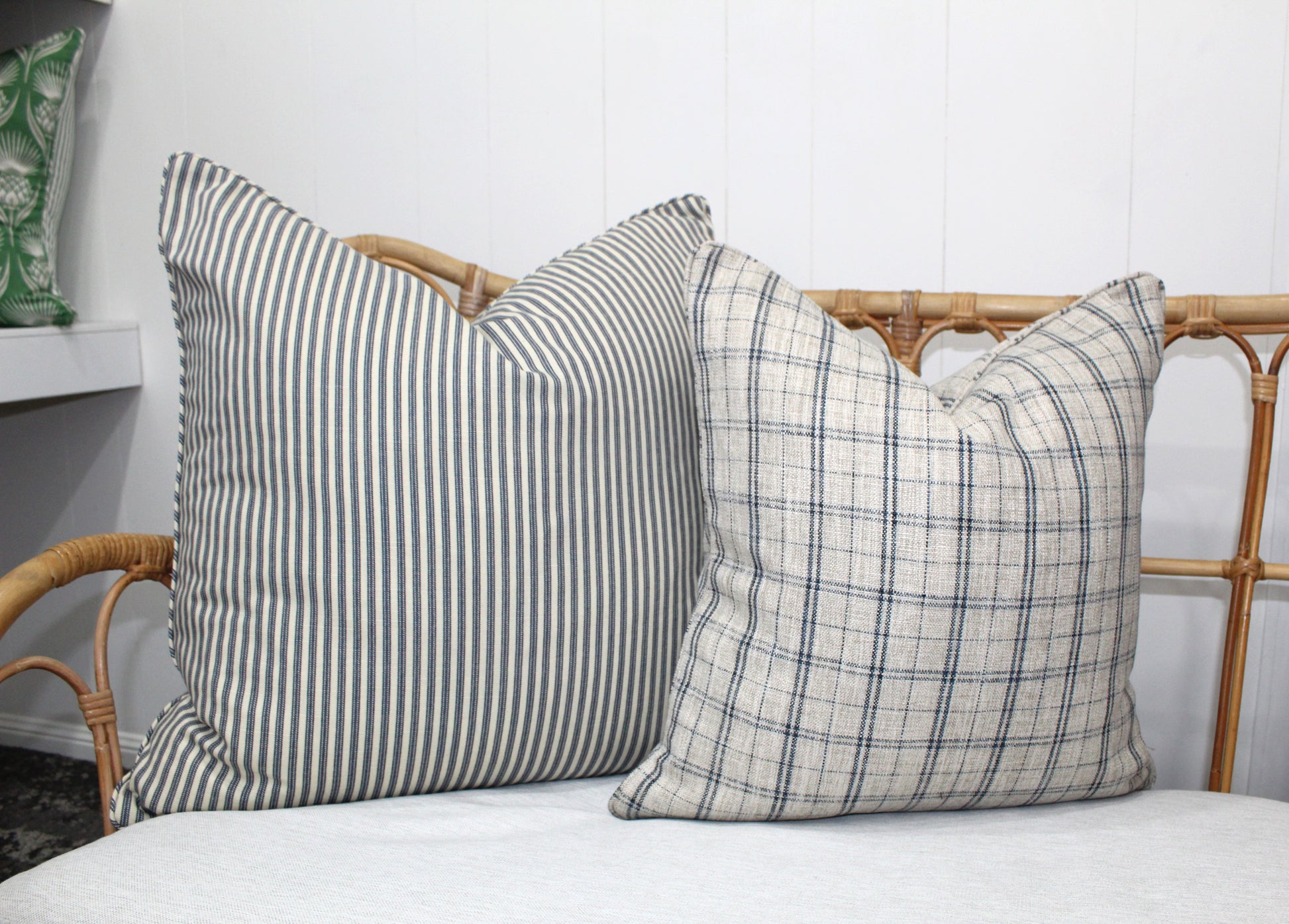 Beautiful cushion covers made using Charles Parsons fabric. The check in is dark navy undertone shades.