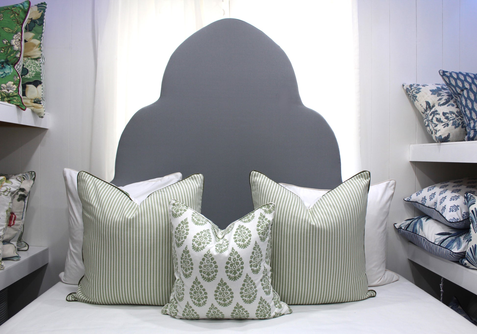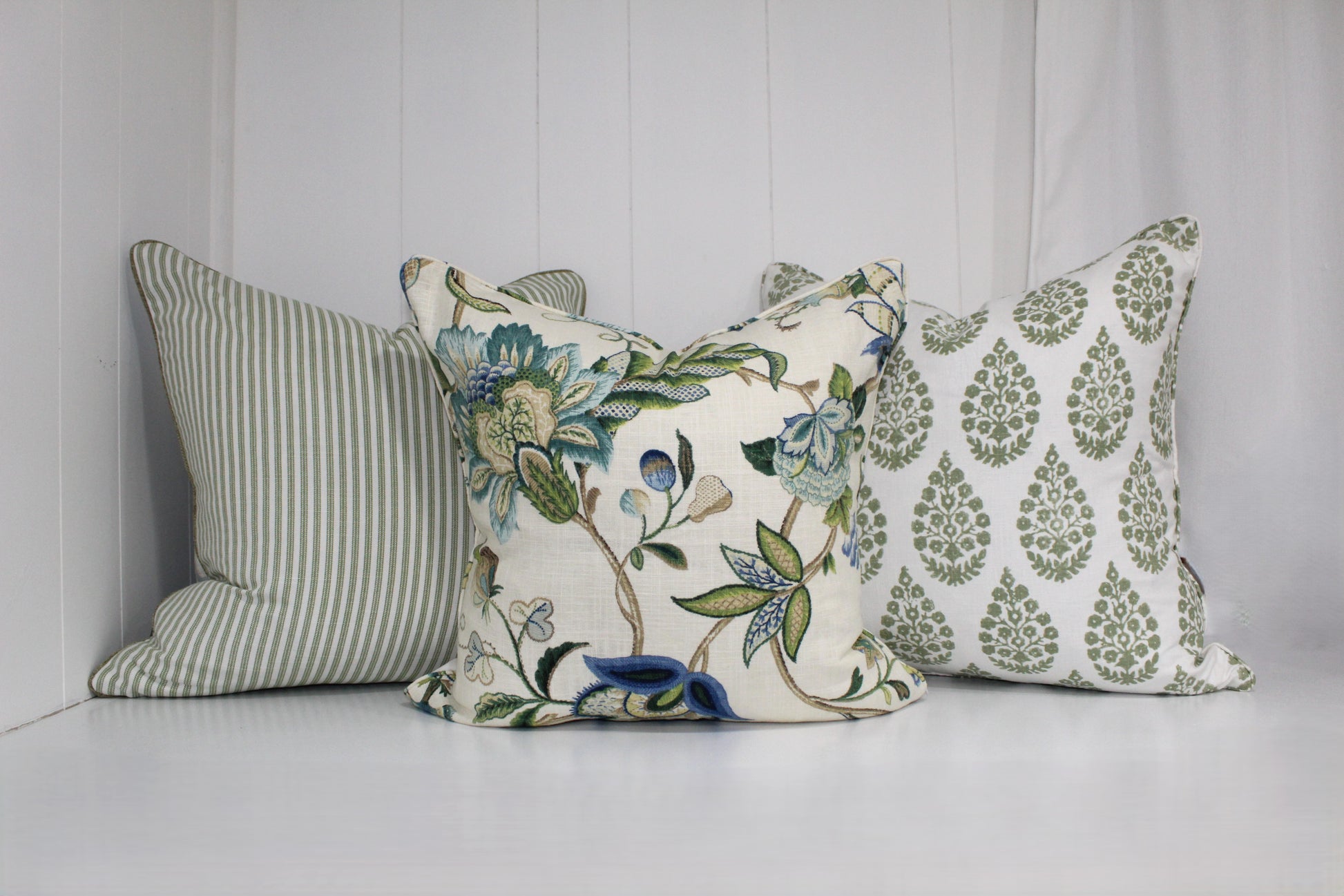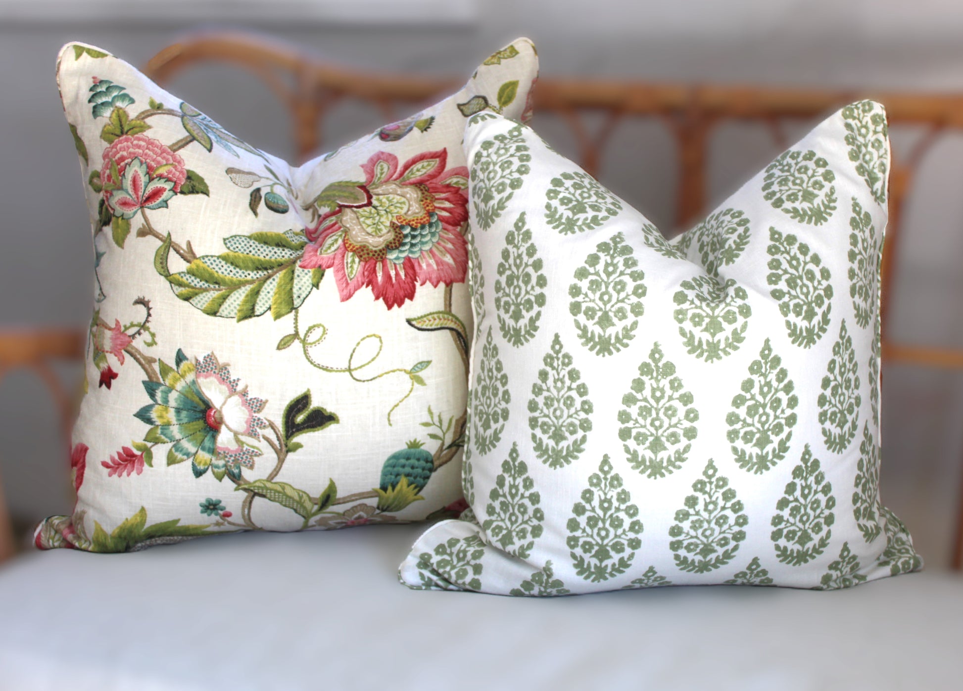 This green fabric has off white linen look background and goes beautifully with most of the covers which has green on them.