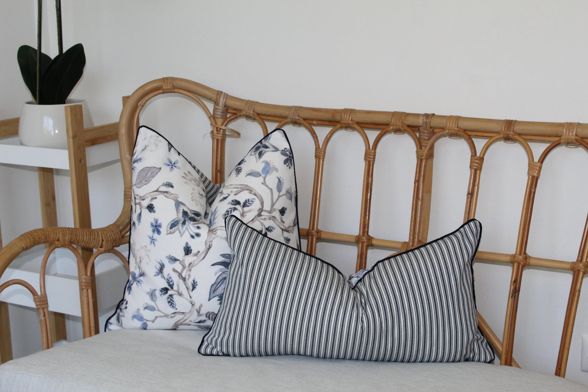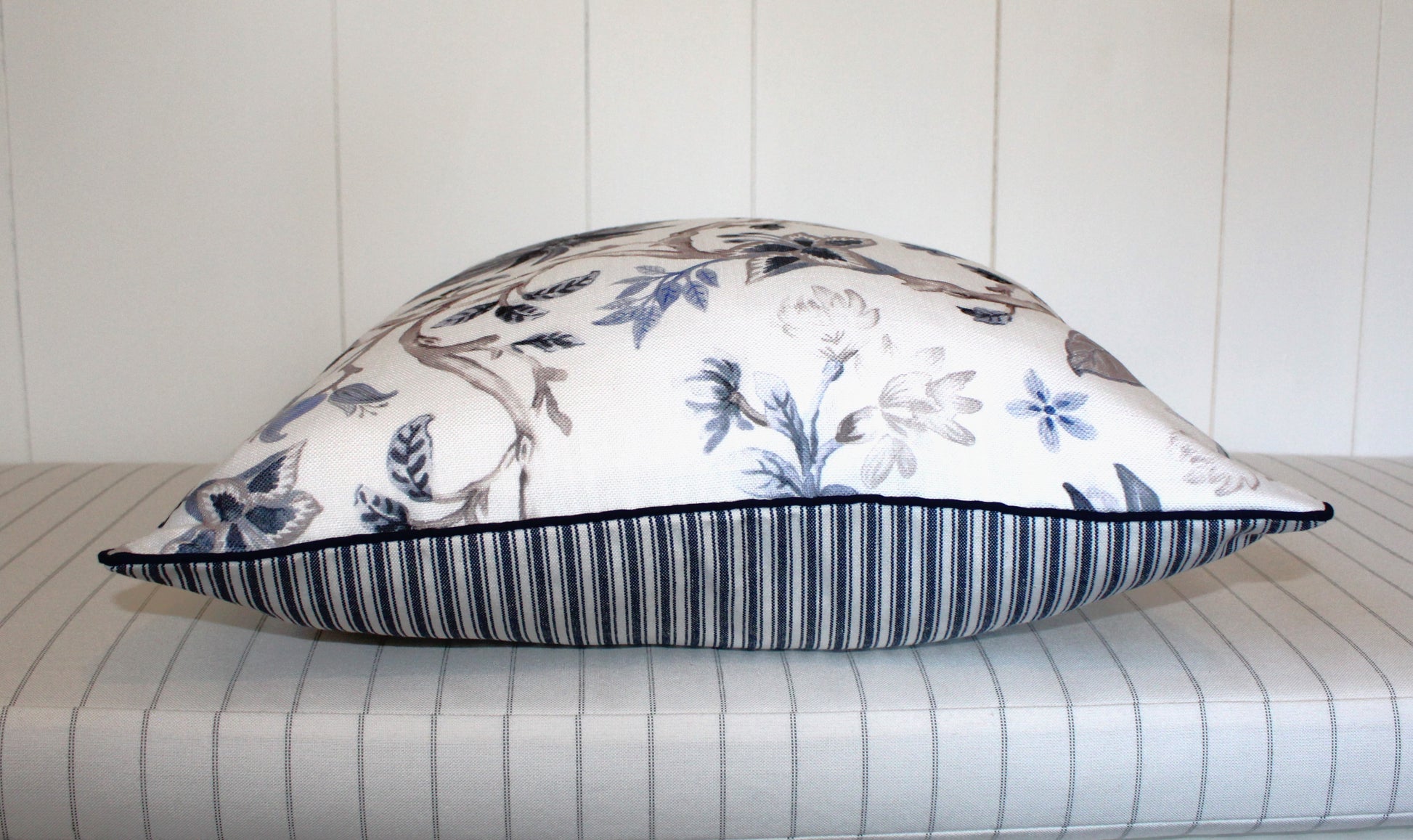 We have backed the covers using our classic navy striped fabric from Acacia Textiles.