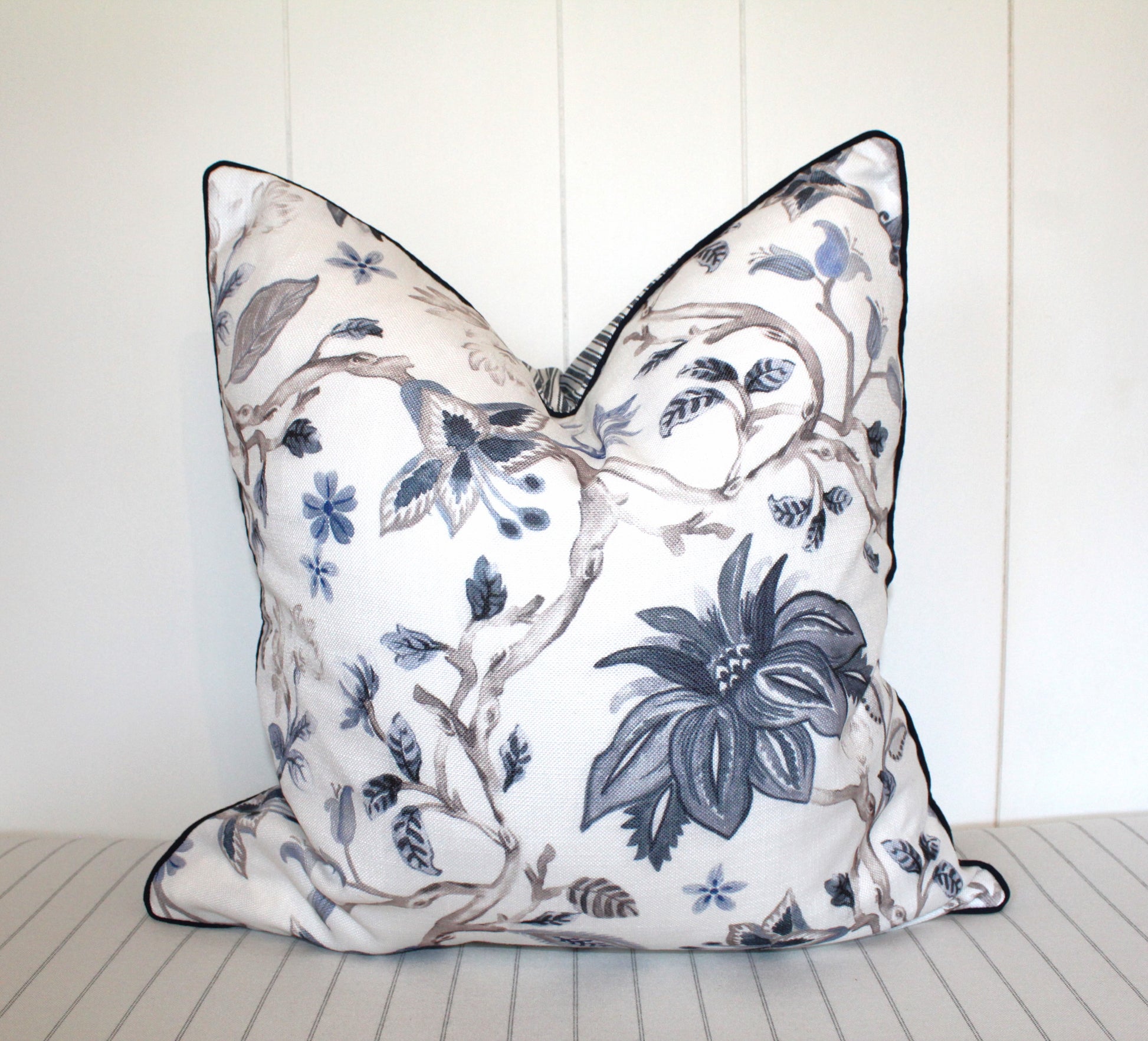 The floral pattern is SouthHampton Navy from Charles Parsons. It has beautiful shade of Navy and beige tones inspired by Hampton's classic colors.