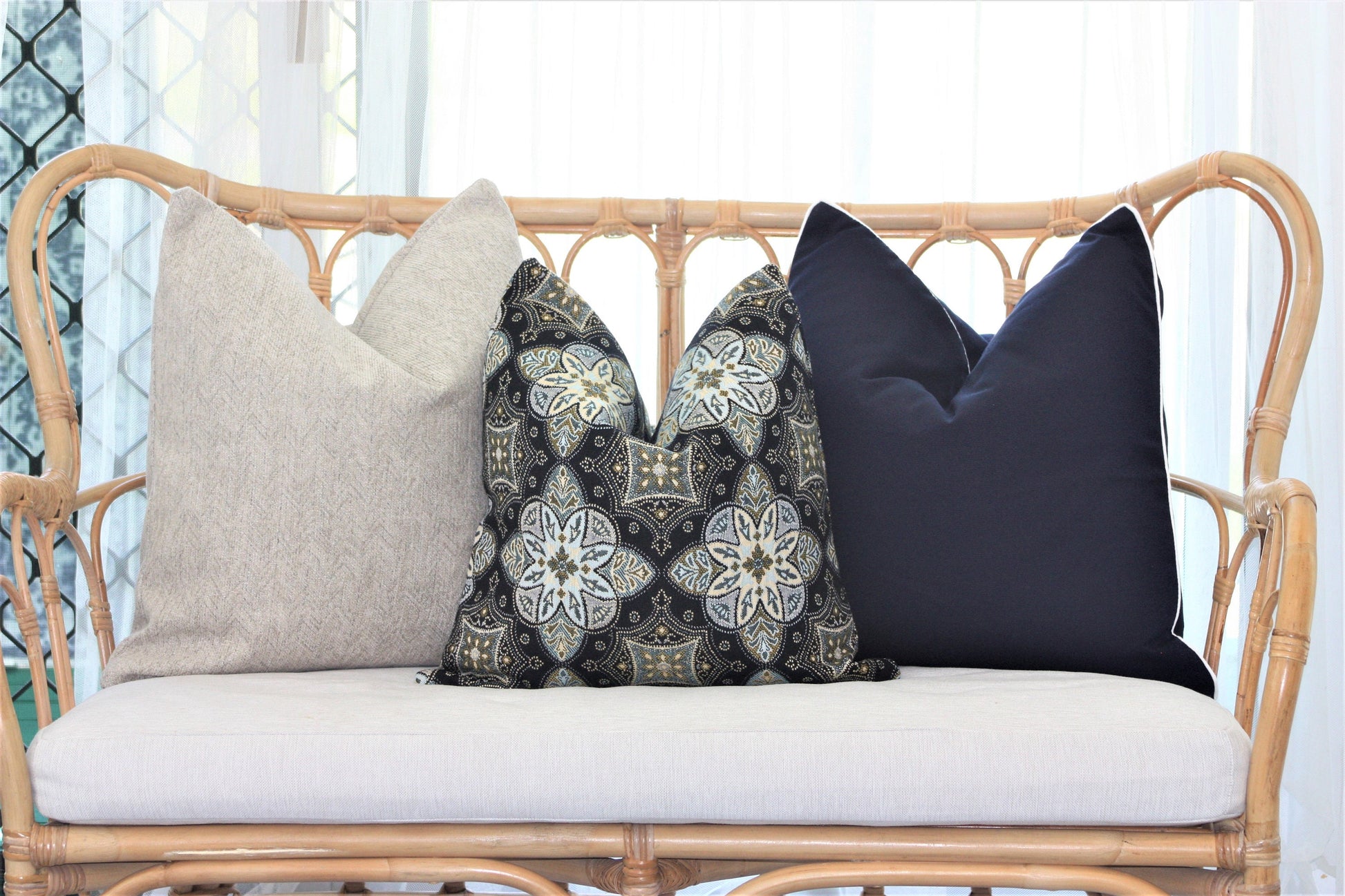 Both side of the cushion has same pattern. Fitted with invisible zipper at bottom. Priced for plain covers (not piped)