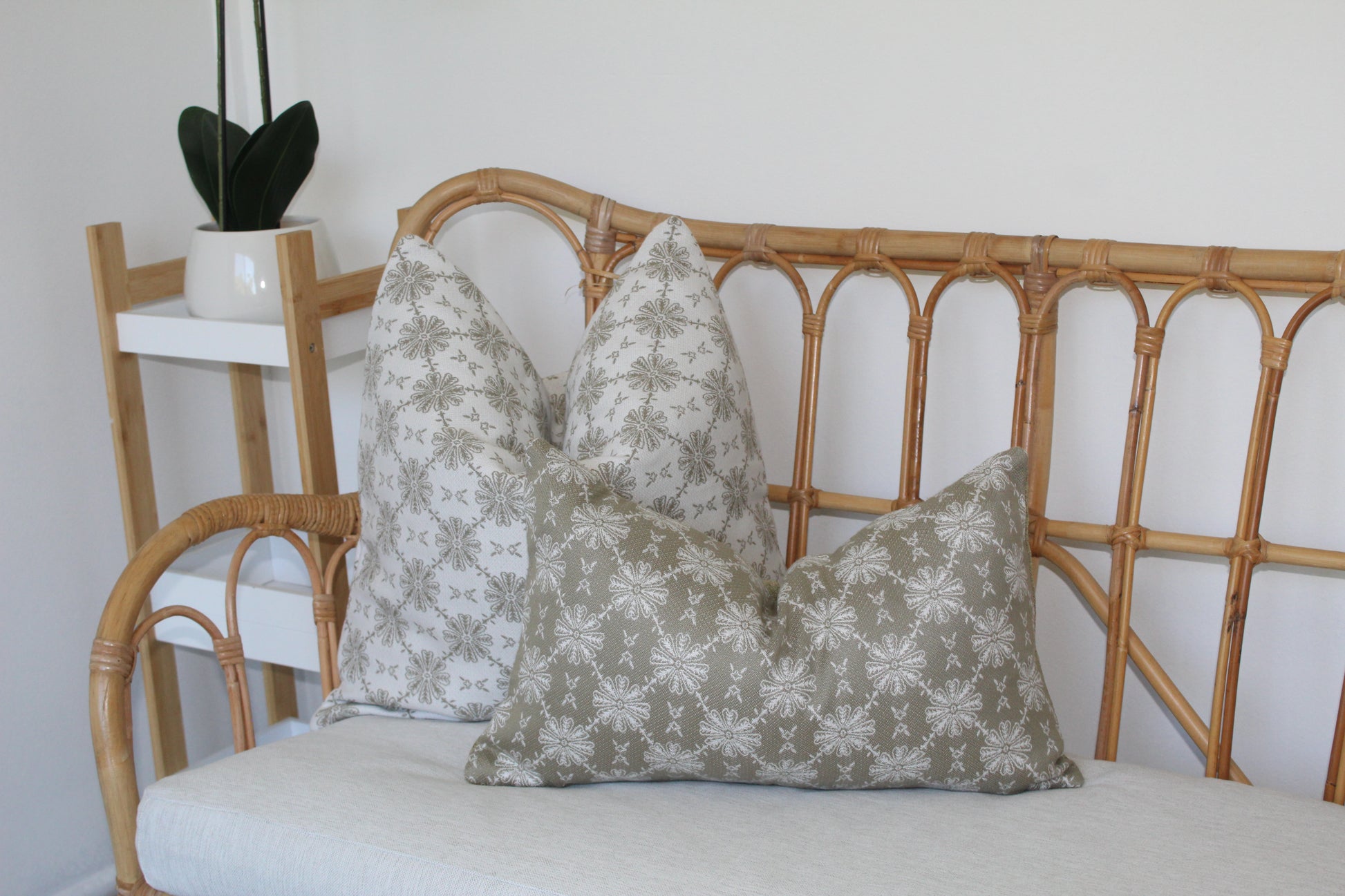 These two cushion covers are made using Sunflower Olive Grove fabric from 3 beaches Textiles.